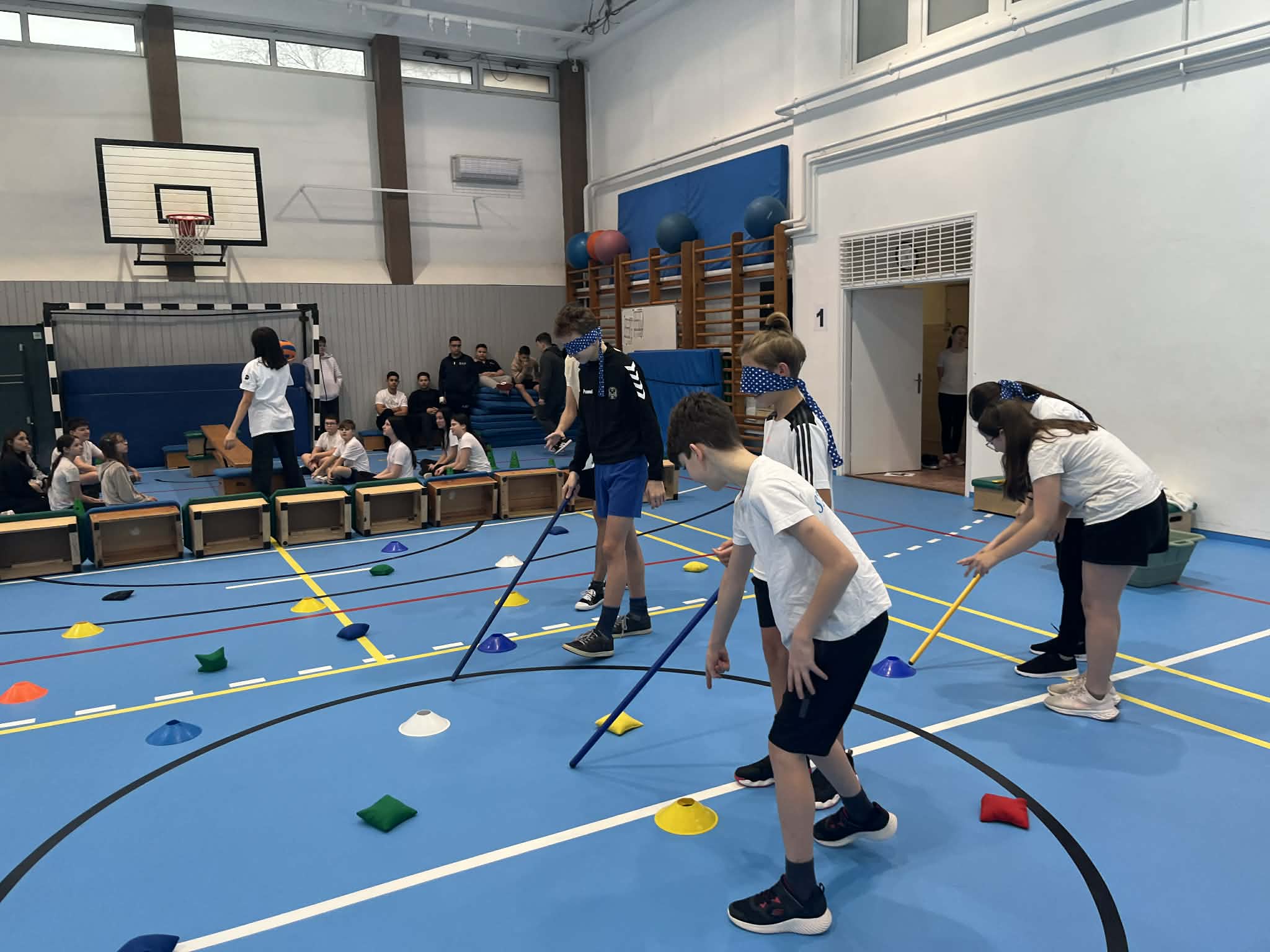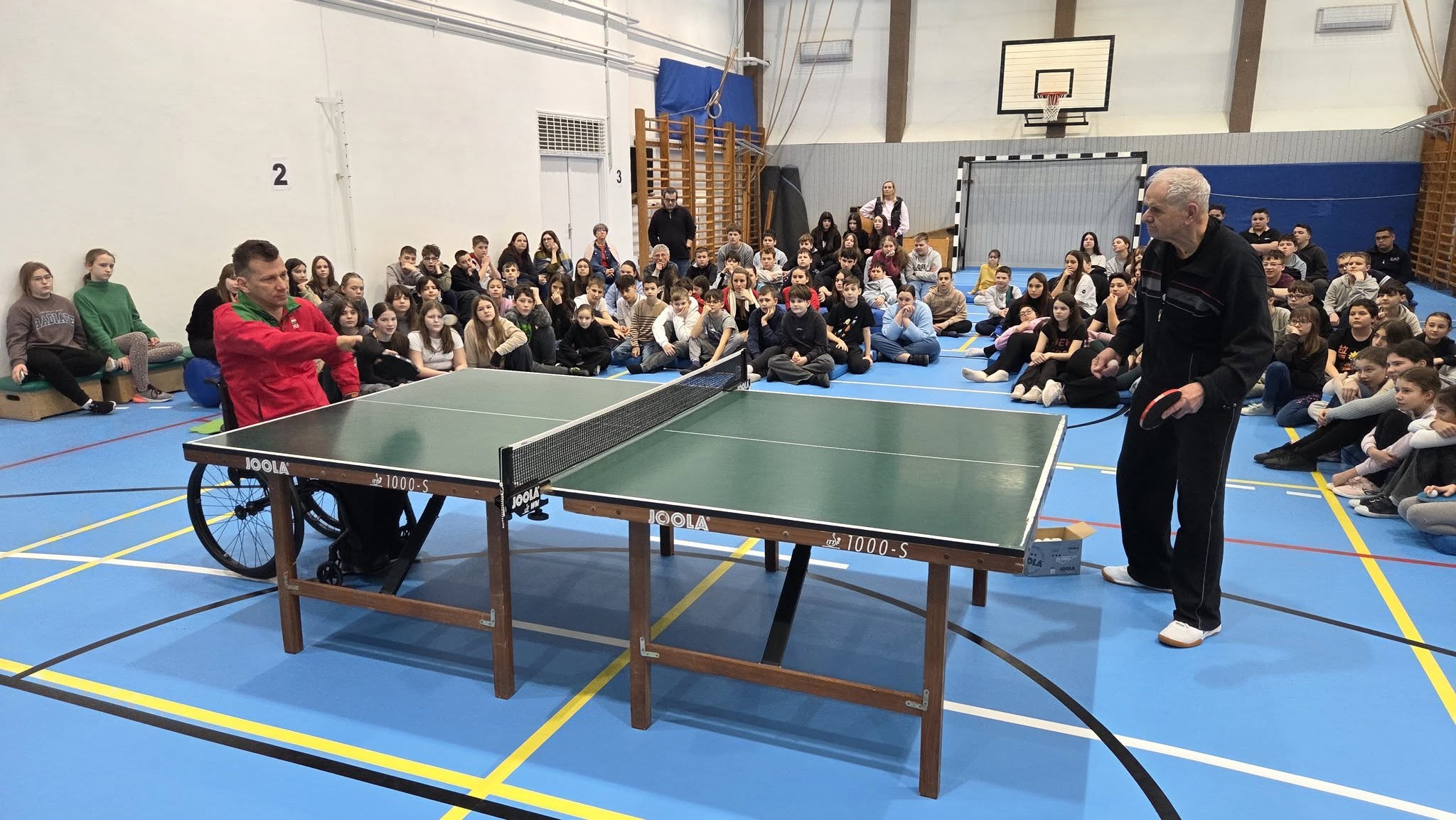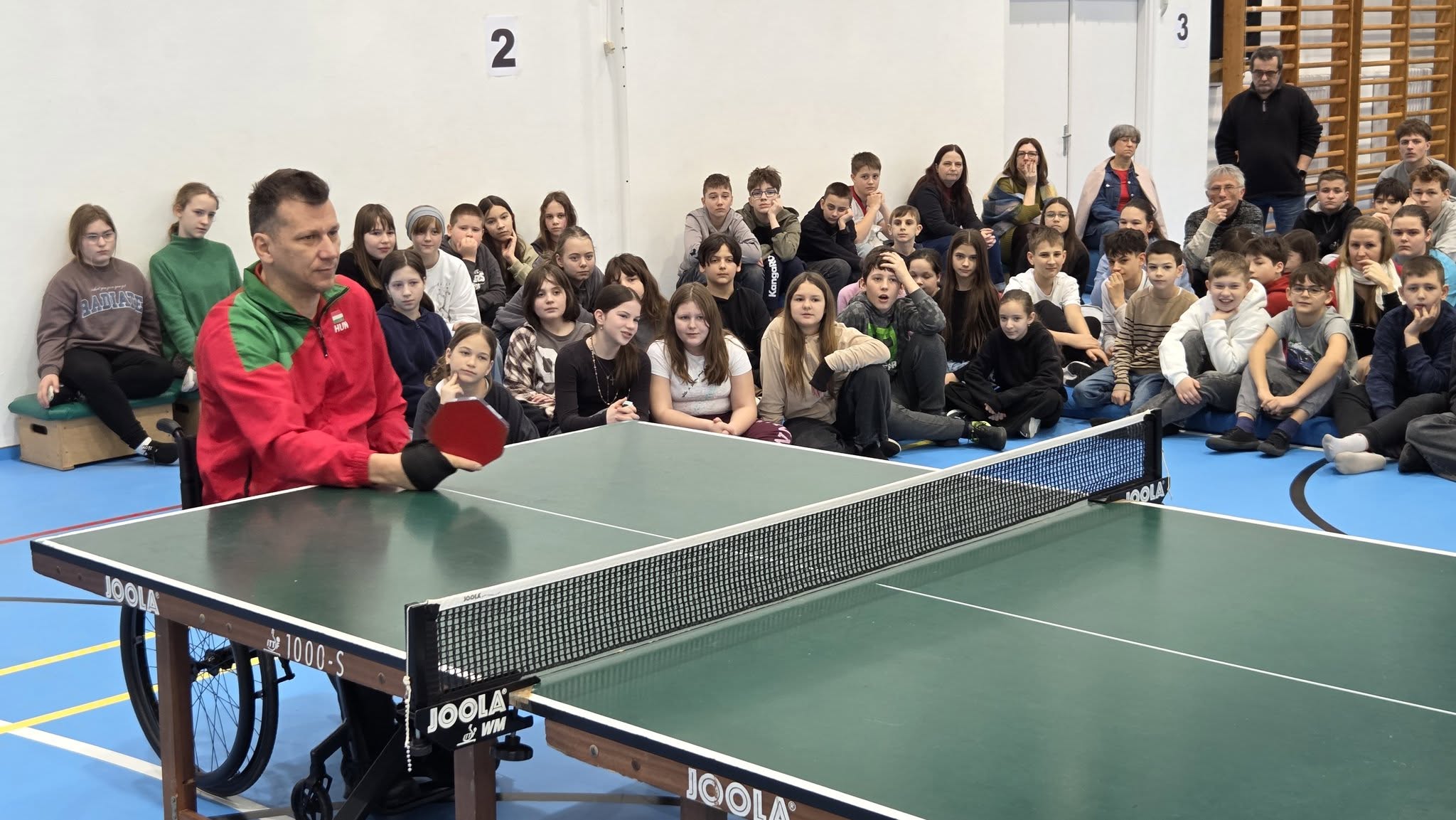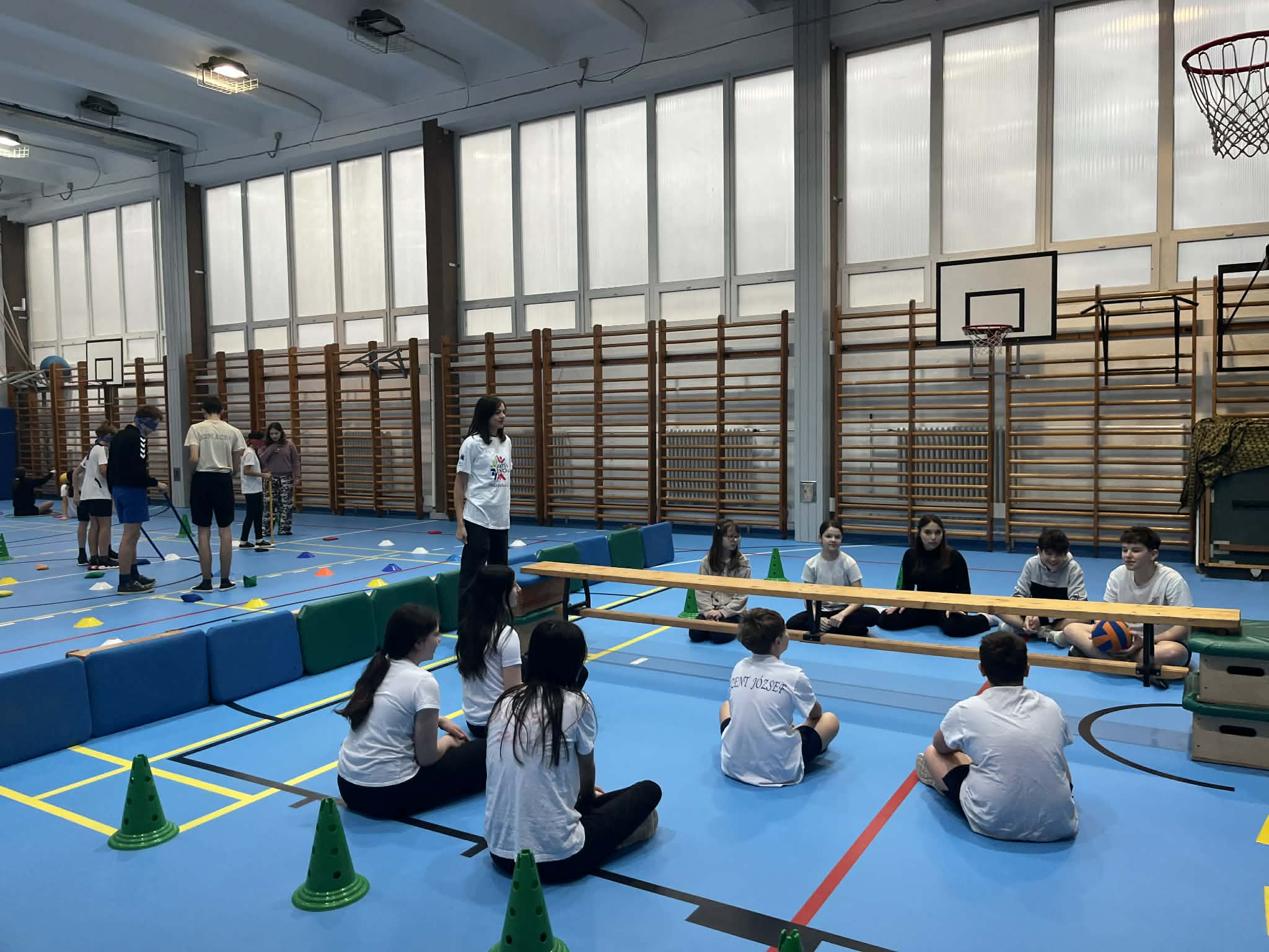 Első órában a felsősök fesztivál jellegű foglalkozáson próbáltak olyan mozgásokat, melyek közben valamilyen nehezítő körülménnyel találkoztak. Ülőröplabdáztak, csörgőlabdáztak többek között. A nap folyamán meghallgattuk Urlauber Ádám, paralimpikon asztaliteniszező előadását, melynek végén tanulóink kipróbálhatták magukat ellene.