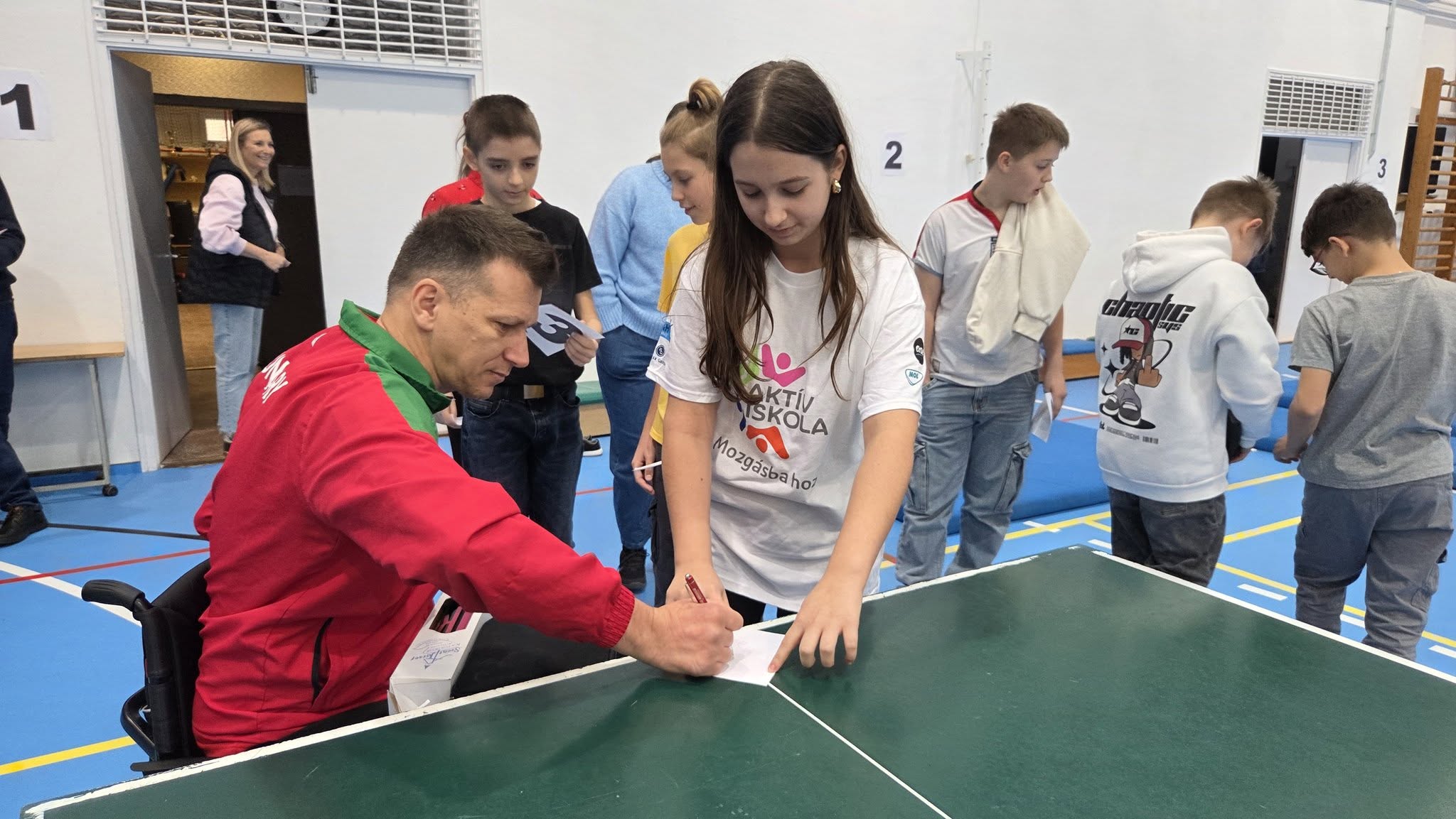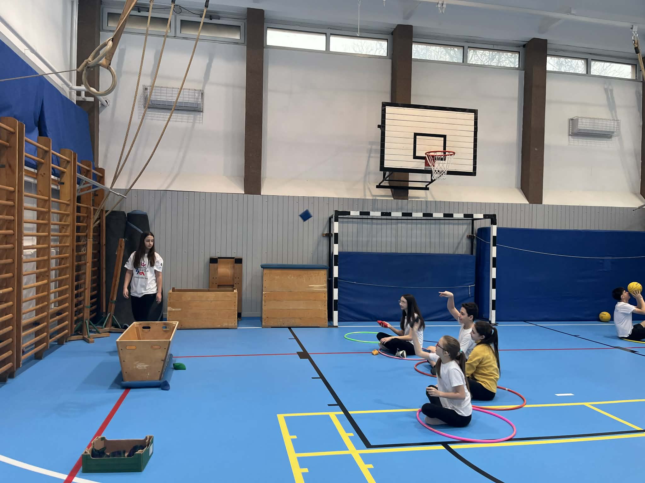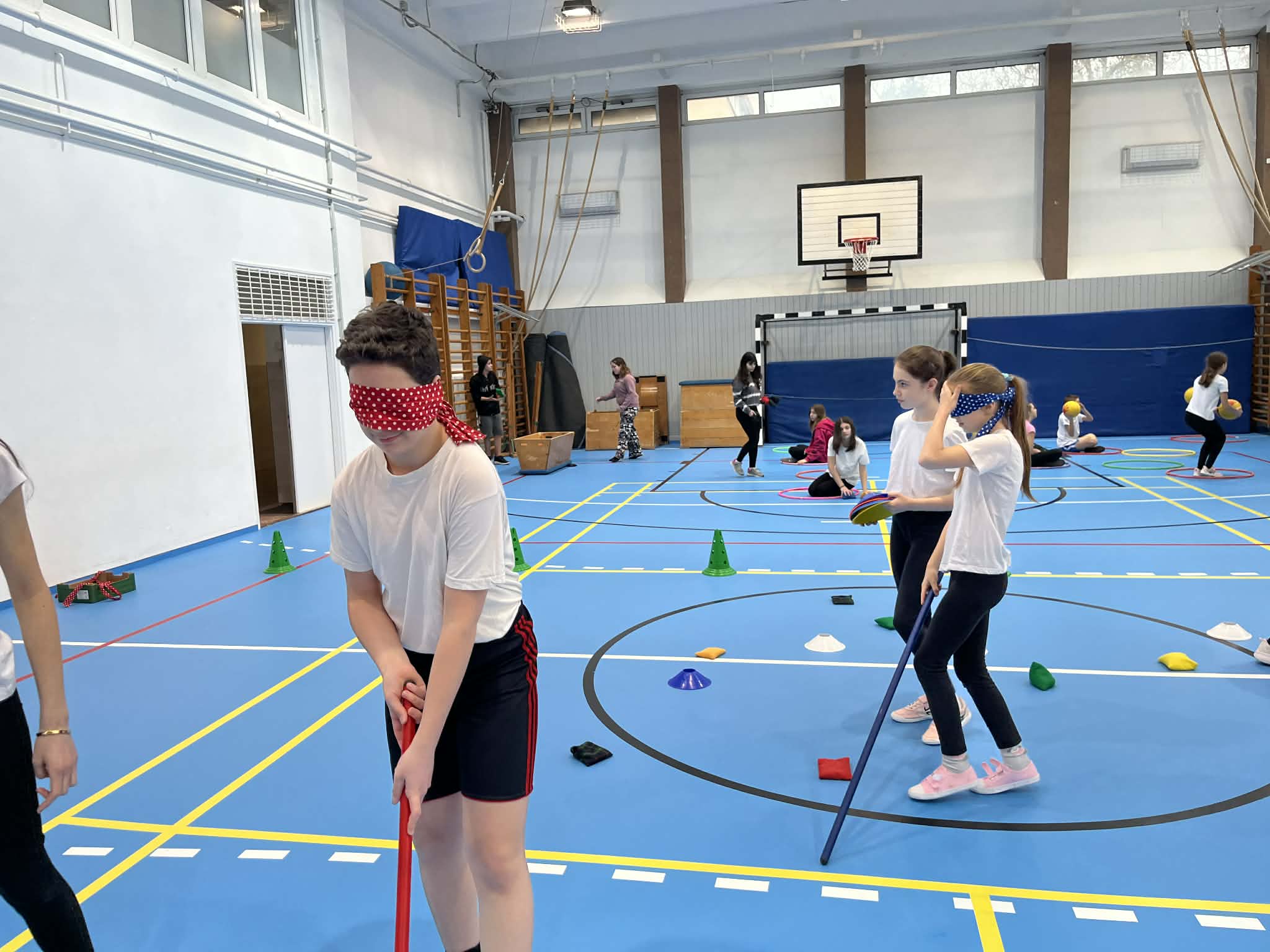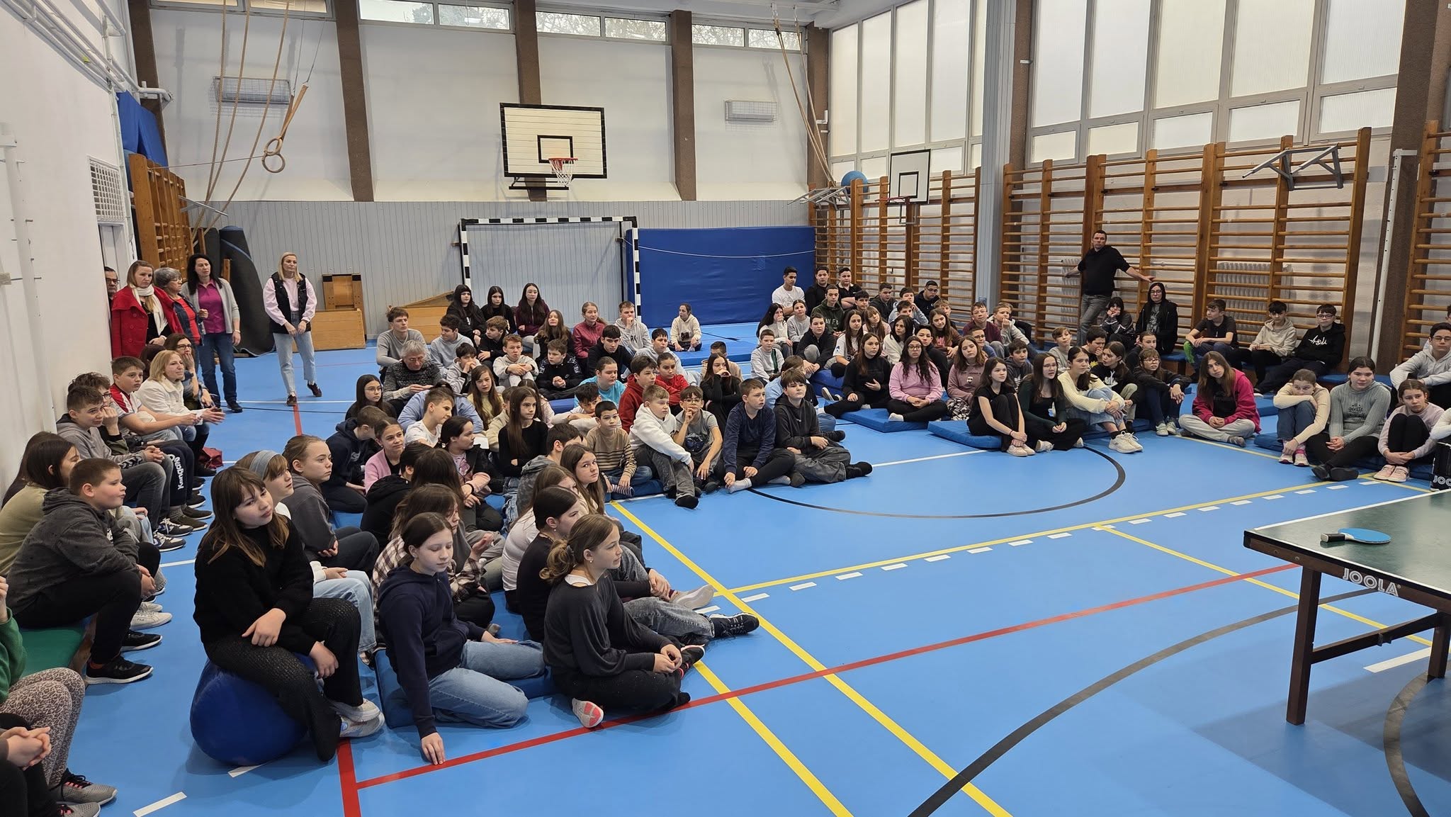 Első órában a felsősök fesztivál jellegű foglalkozáson próbáltak olyan mozgásokat, melyek közben valamilyen nehezítő körülménnyel találkoztak. Ülőröplabdáztak, csörgőlabdáztak többek között. A nap folyamán meghallgattuk Urlauber Ádám, paralimpikon asztaliteniszező előadását, melynek végén tanulóink kipróbálhatták magukat ellene.