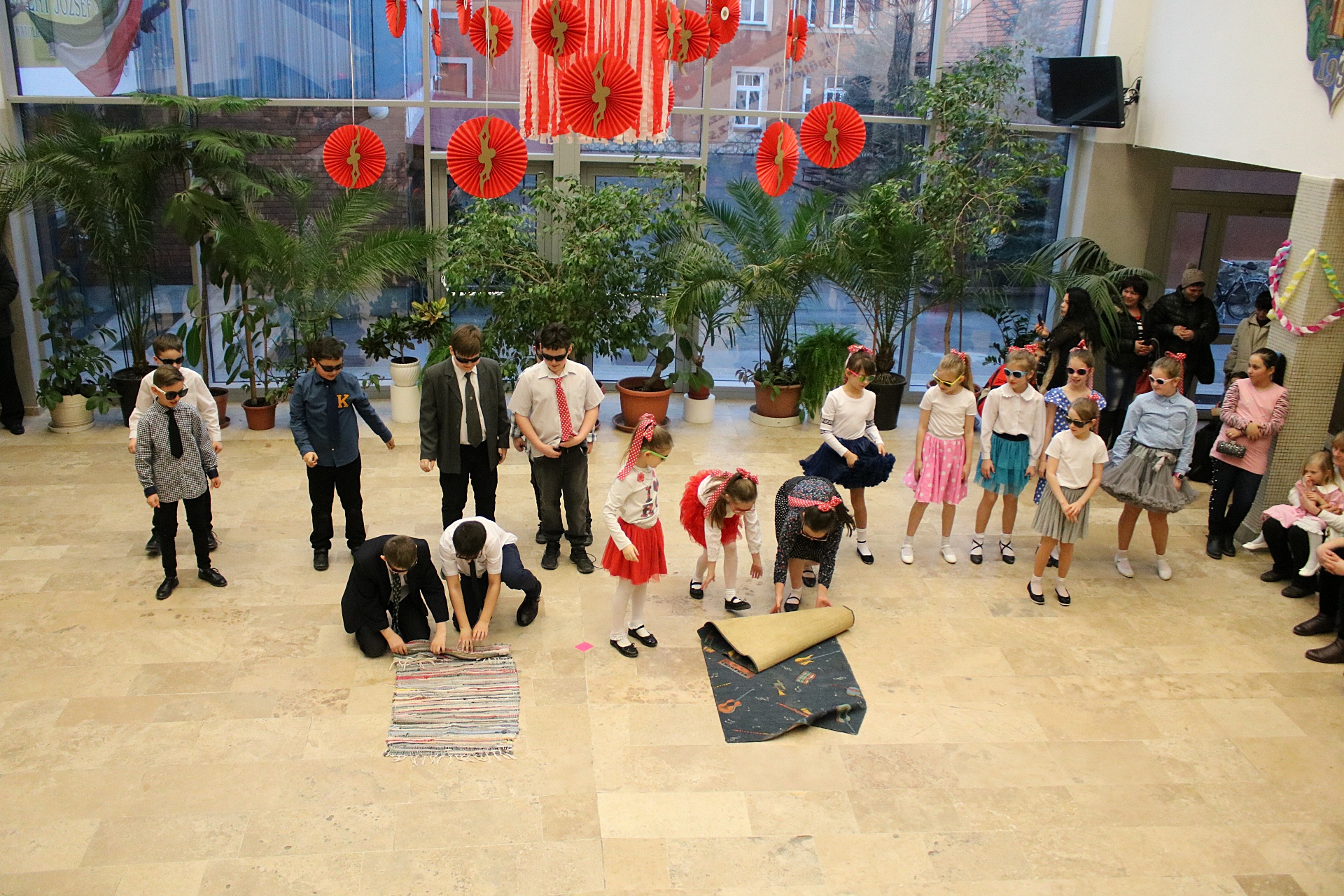 Pénteken délután farsangi mulatságra gyűltünk össze. Az osztályok közös táncaikkal jó hangulatot teremtettek. 120 egyéni jelmezes színesítette a programot, ahol a szerencsések ajándékot kaptak. A zsákbamacska és a büfé sem maradt el. Közös, vidám tánc zárta a bulit.
