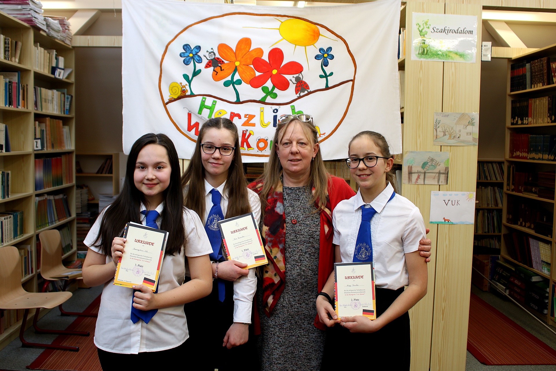 A zsűrizés nehéz feladatát Zsikla Ágnes, a Bibó István Gimnázium német nyelvtanára, Carmen Pap-Schäfer nyugdíjas némettanárnő és Garamvölgyi Katalin kolléganőnk vállalta el.