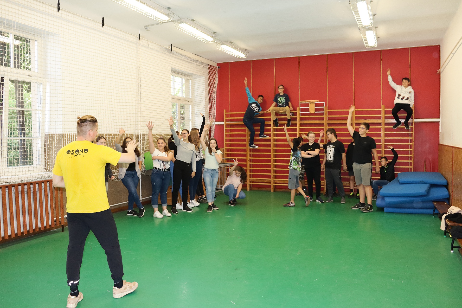 Nagy örömünkre az erdélyi magyar fiatalok által működtetett Osonó Színházműhely drámapedagógusai érkeztek ma el iskolánkba. Különféle drámajátékokkal tették felejthetetlenné a 7-8. évfolyamosaink számára a 1,5 órás foglalkozást. A gyerekek örömmel kapcsolódtak be a különböző feladatokba. Szívből köszönjük a két előadónknak és a Magyarság Házának a színvonalas programot.