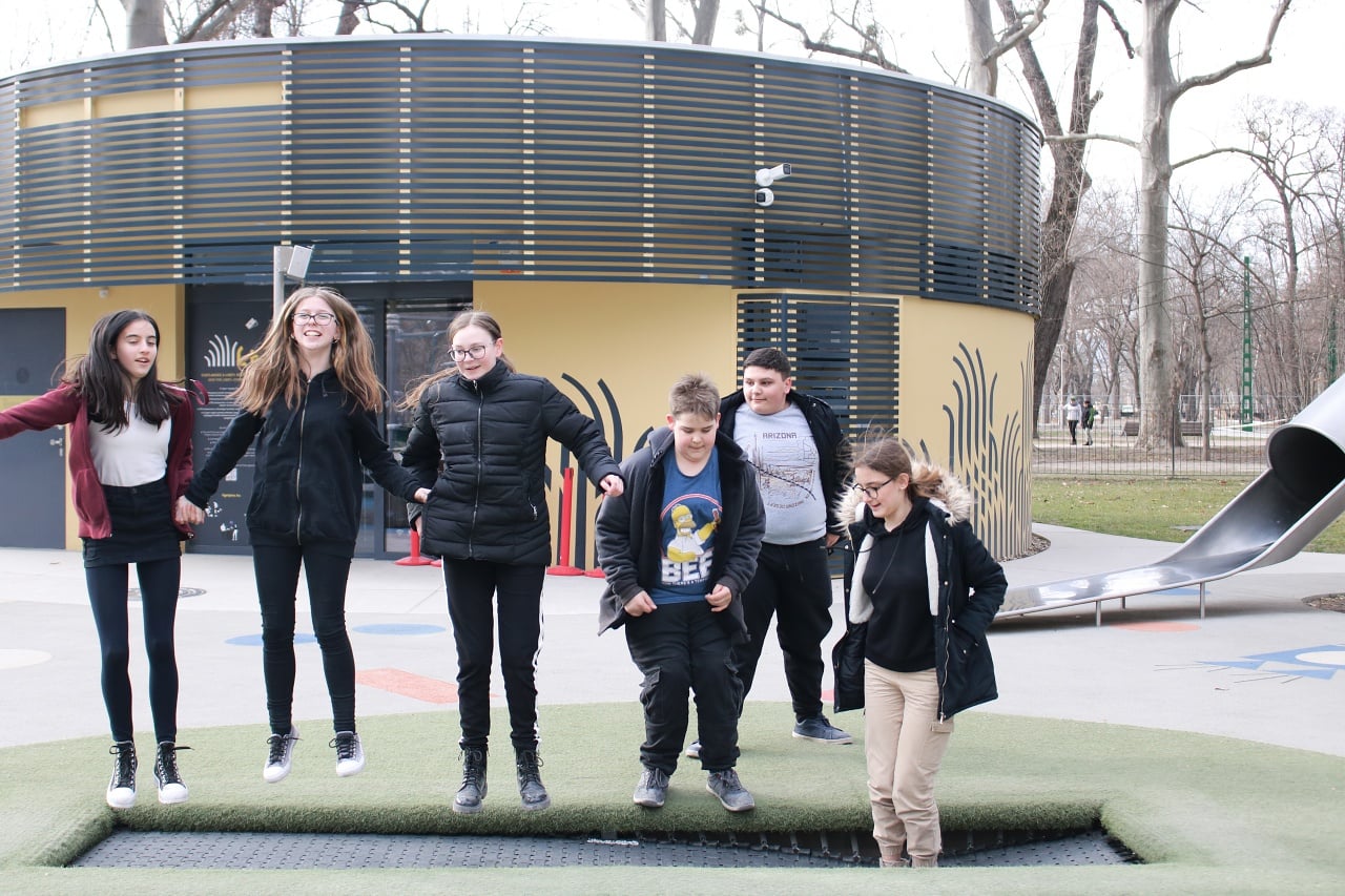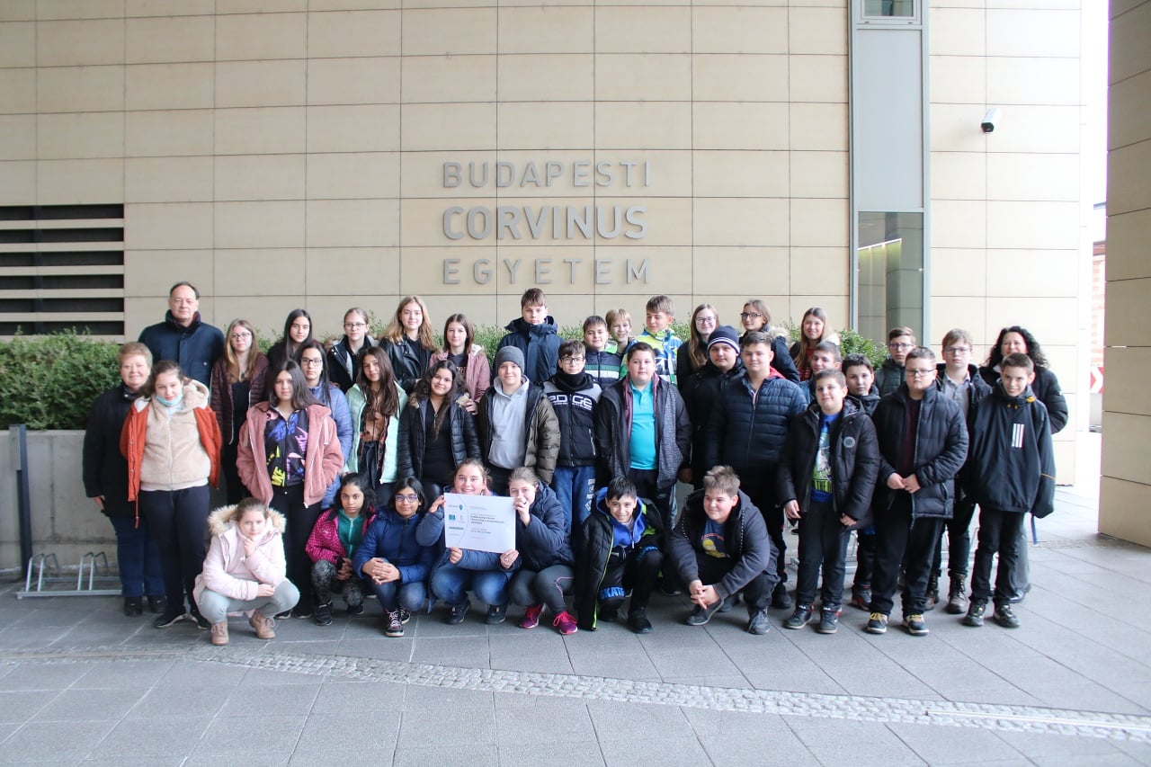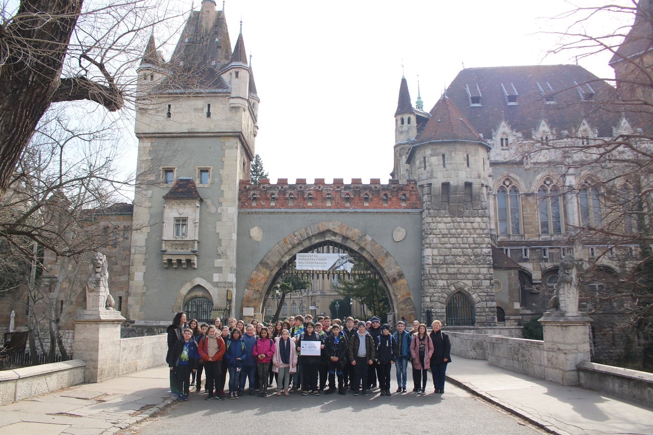 Hatodik évfolyamosaink tegnap tanulmányi kirándulás keretében Budapesten jártak. Elsőként a Corvinus Egyetemen, majd a Vajdahunyadvár Mezőgazdasági Múzeuma „Rejtelmes rengeteg” foglalkozásának feladatait teljesítették. A kellemes napsütésben átsétáltak a közeli szuper játszótérre, ahol kipróbálták a mászófalat, a spirális csúszdát, a dobbantó sípokat, a köztéri dobokat, hangpedálokat. A Magyar Zene Háza elvarázsolt mindenkit: a legmodernebb technikával felszerelt interaktív kiállítás a zene kialakulásától napjaink modern muzsikájáig kalauzolta a látogatót. Az élményekkel teli nap hasznos tudással látta el a kirándulókat.