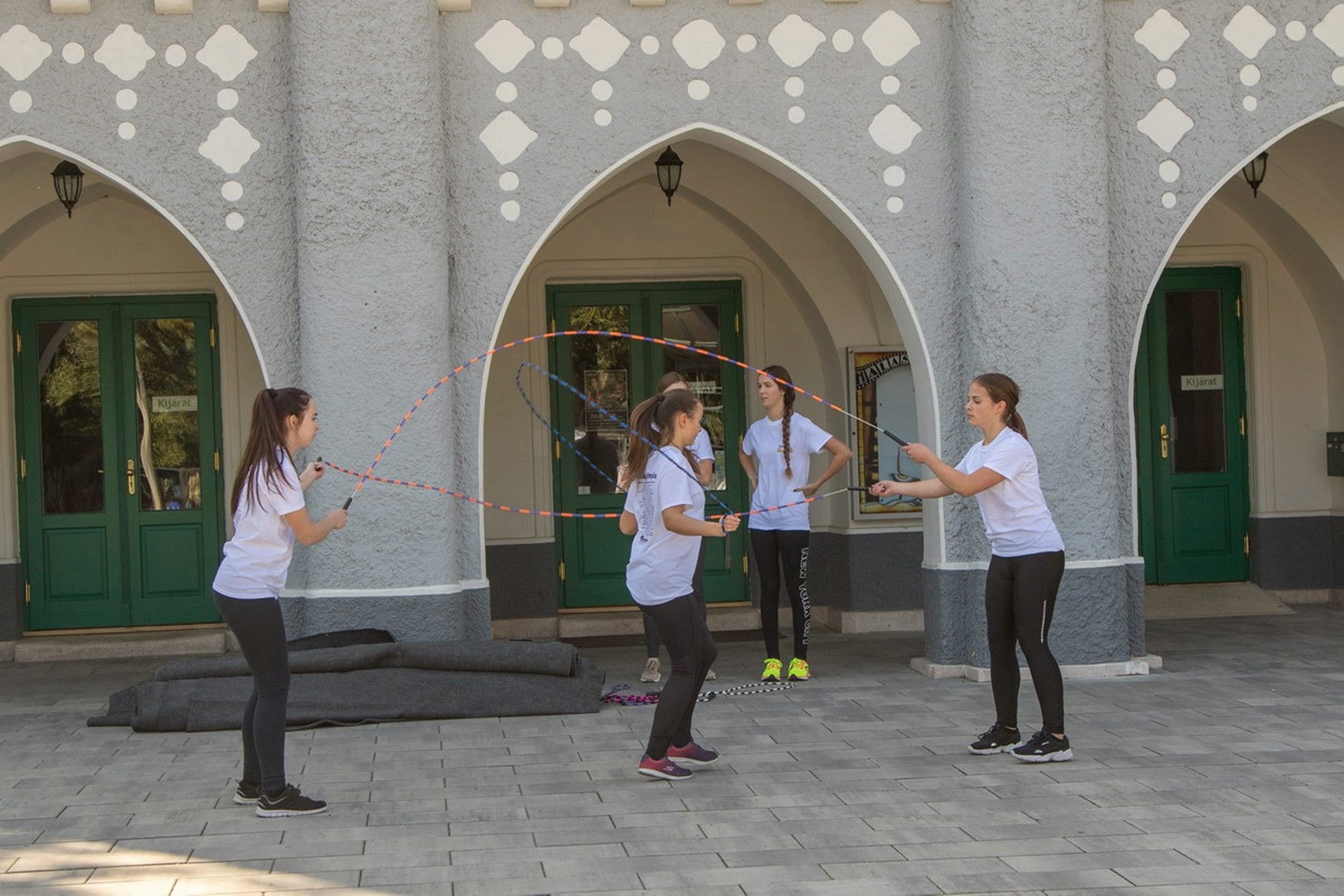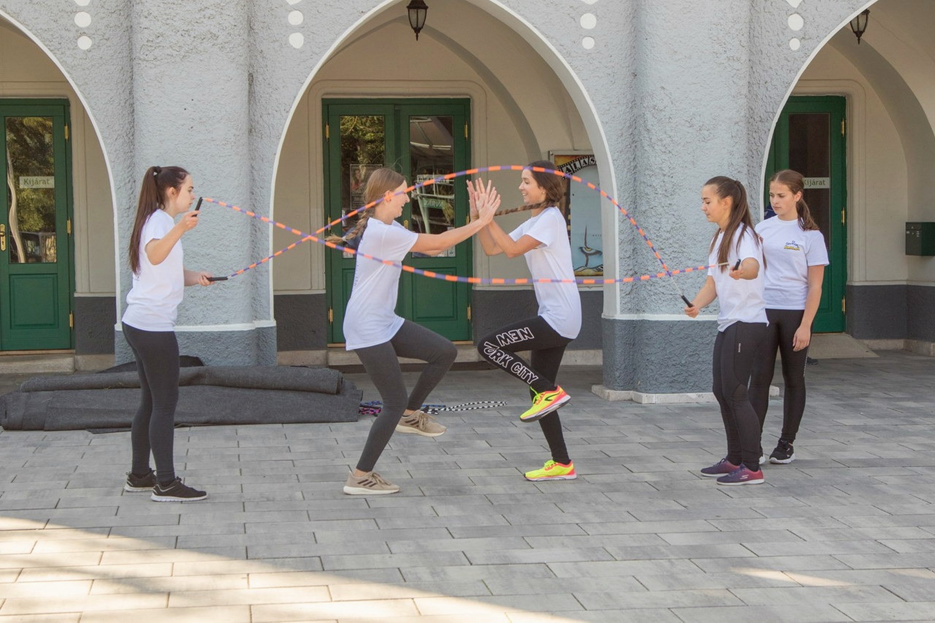 Pénteken iskolánk tanulói részt vettek a városi rendezvényen. Az ugrókötelesek 7 perces bemutatója nagy sikert aratott. A kerékpáros ügyességi versenyen csapatunk szabályos felállással: 3 fiú, 3 lány – 2. helyezett lett. Jutalmuk kerékpárhoz való ajándékcsomag. Köszönjük a részvételt. Gratulálunk a helyezetteknek!