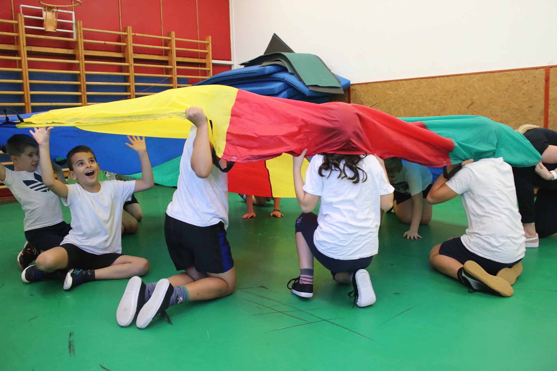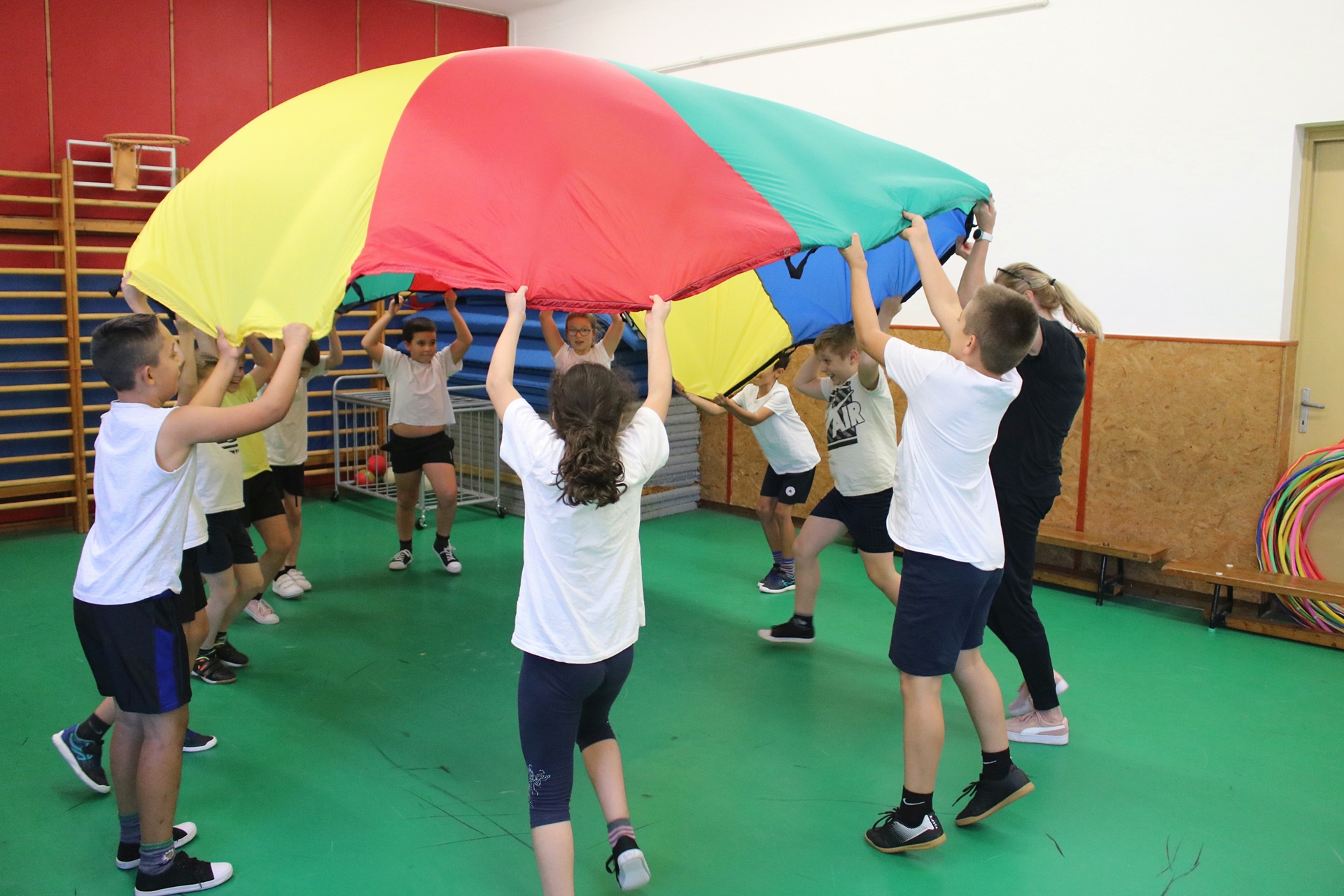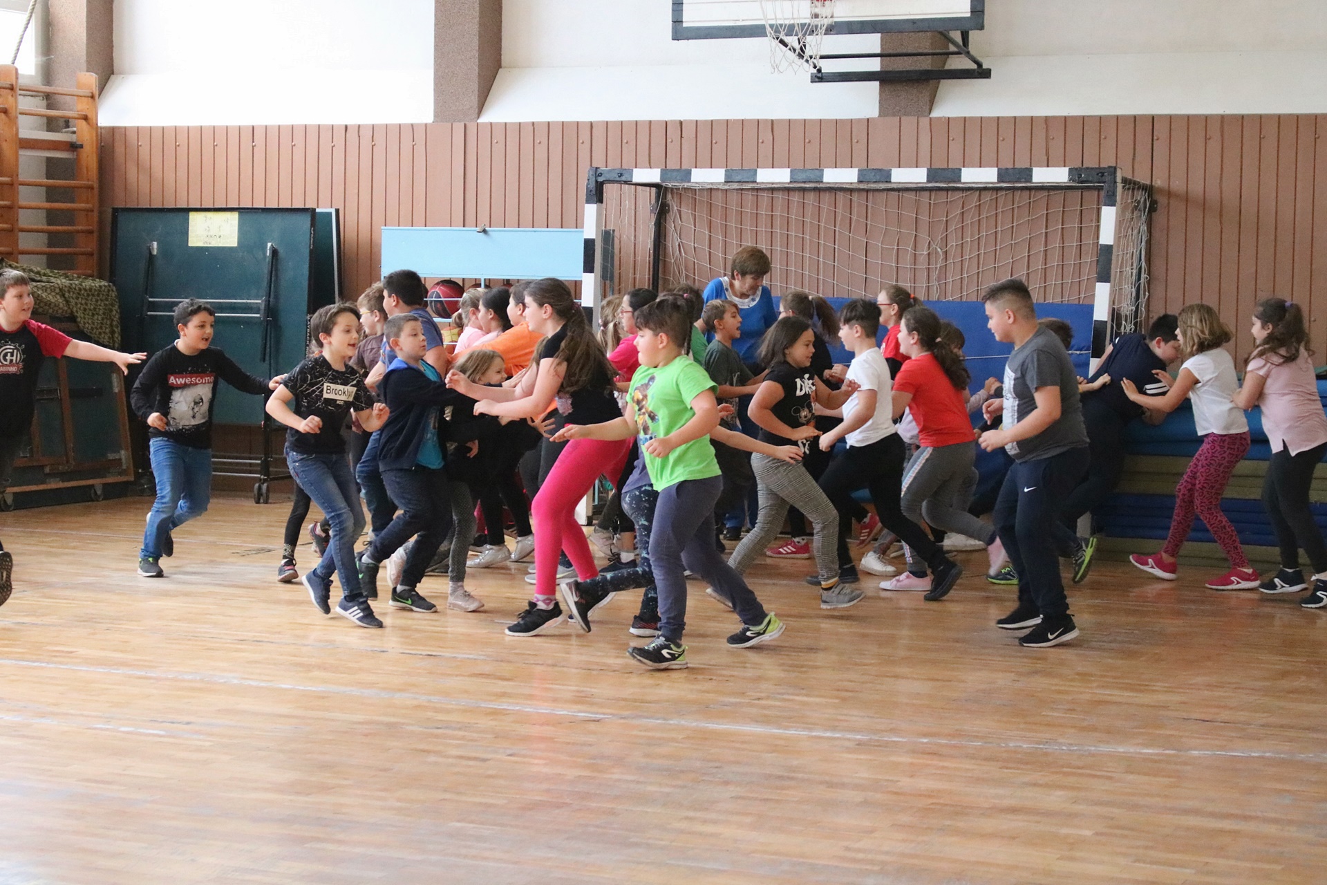 Zenés gimnasztikával hangolódtunk a további mozgásos tevékenységre. Minden óraközi szünetben sportoltak tanulóink és testnevelés órákon is vidám, játékos feladatokkal erősítették szervezetüket.