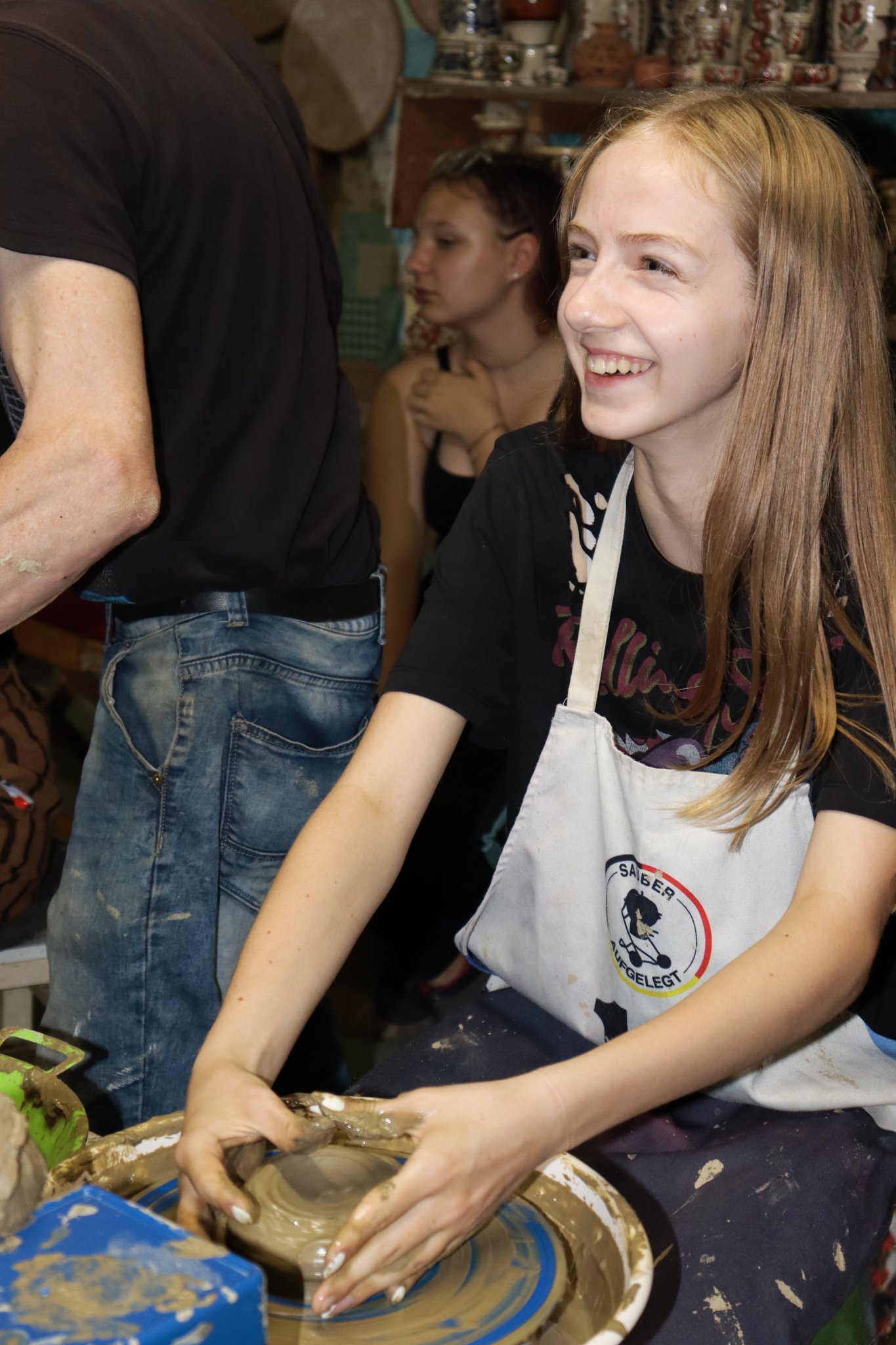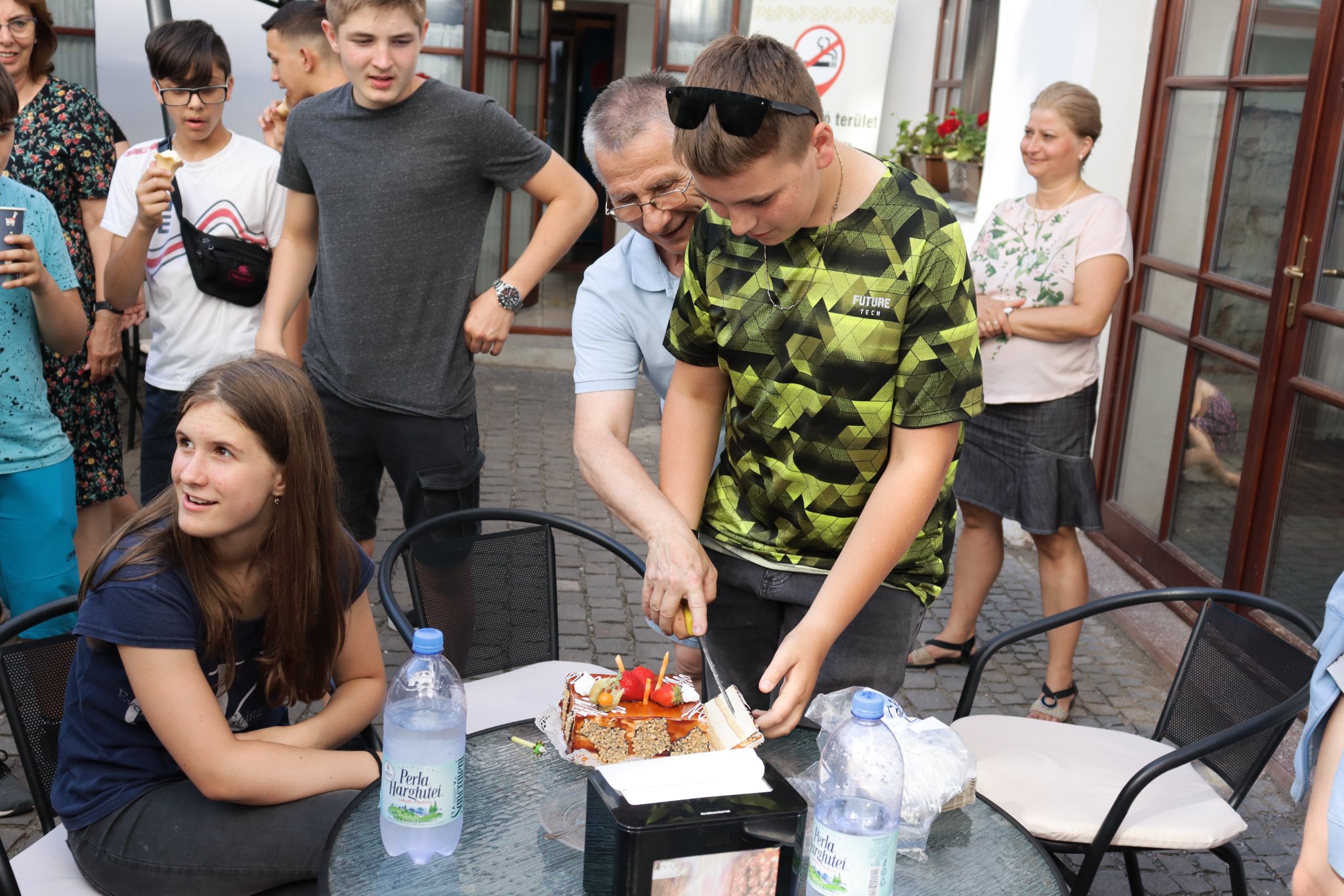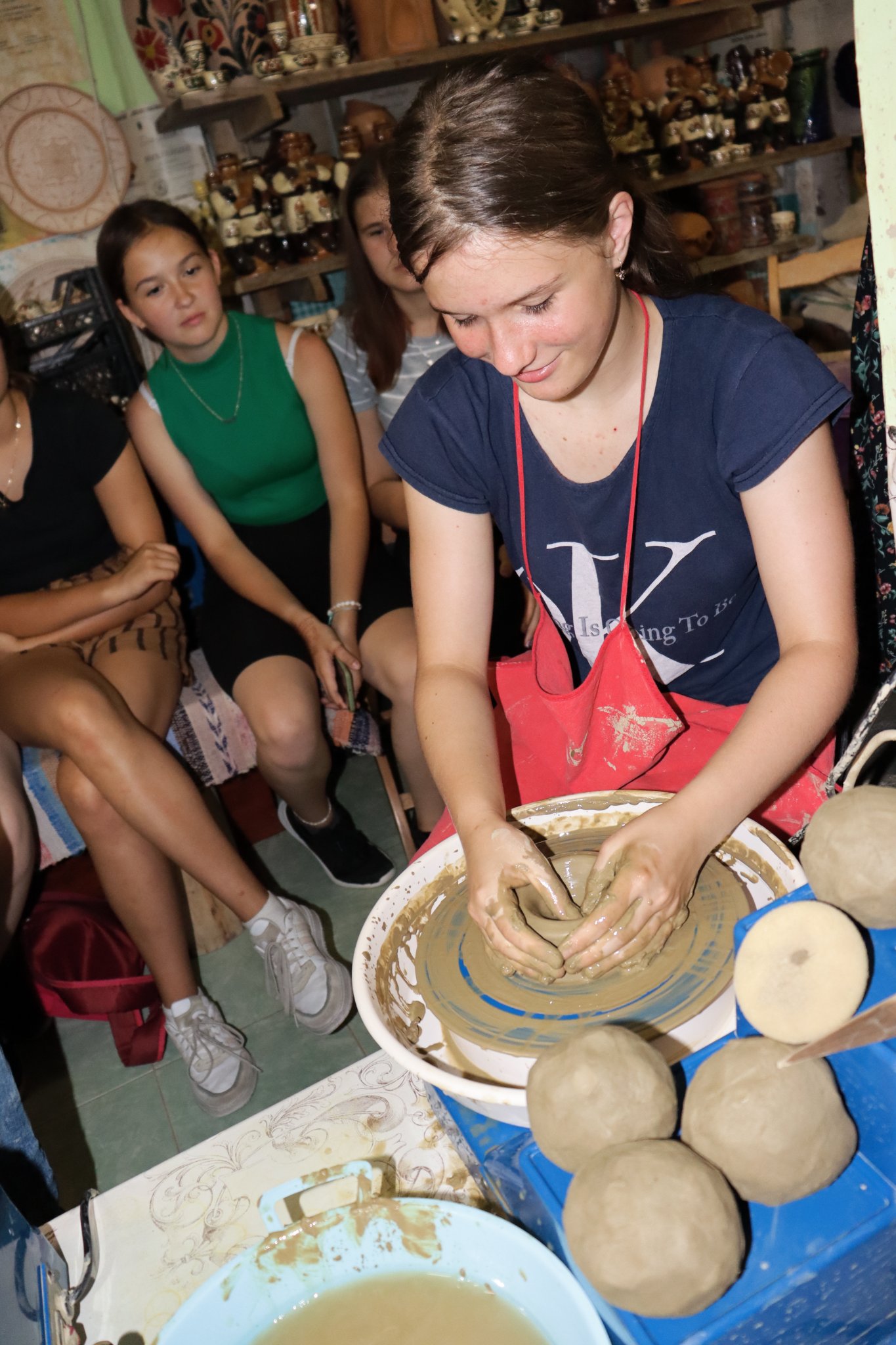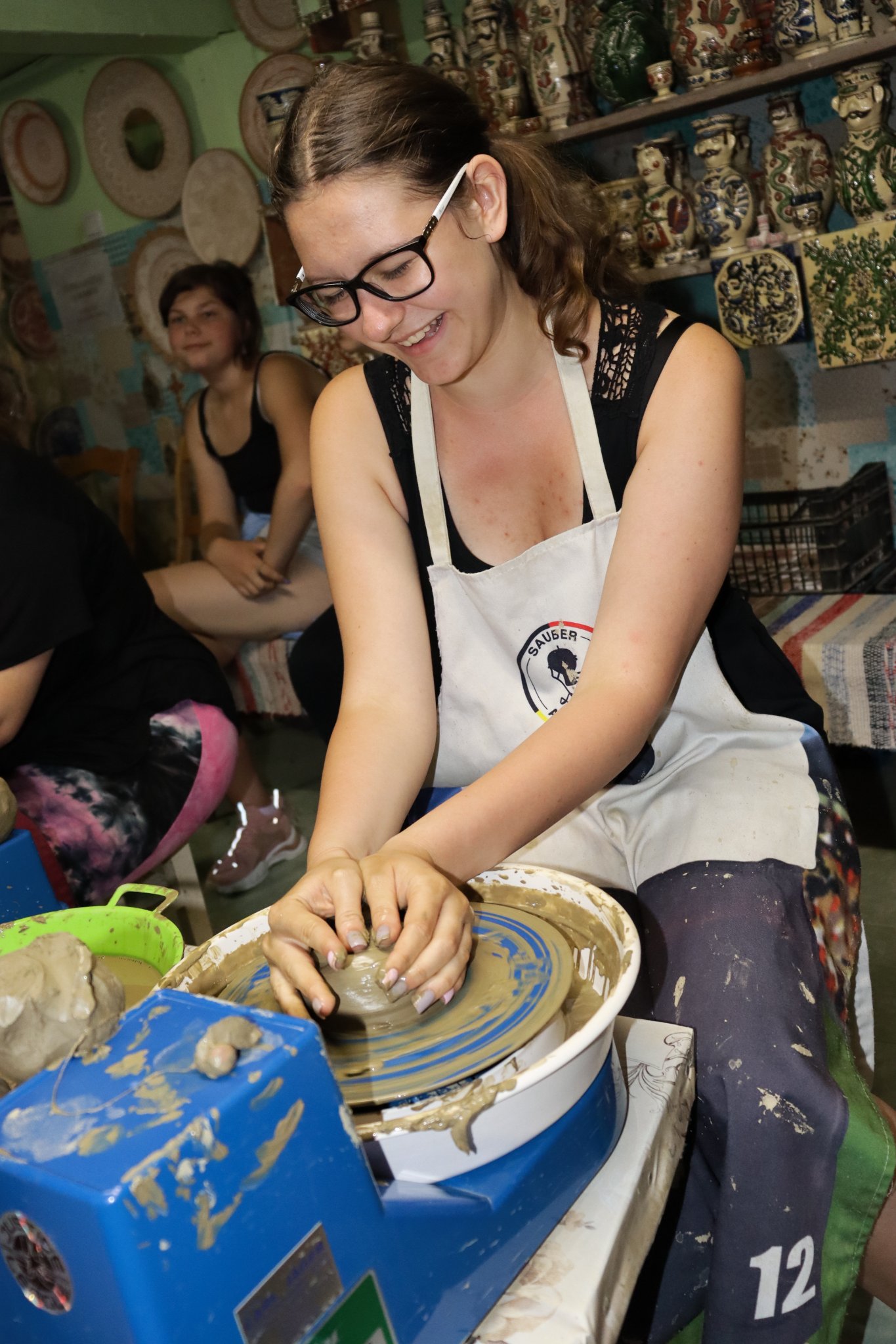 Ma Korondon megismerkedtünk Európa egyik különleges, kihalófélben levő mesterségével a taplászattal. Zoli bácsi az elhivatott helybéli székely, megtanított minket arra, hogy mit üzennek nekünk a székelykapuk. Pl.: „Aki nem békés szándékkal érkezik, inkább be se jöjjön!”. Ezután egy pásztor feleség házi készítésű sajtjait kóstolhattuk meg. Laci bácsi a korondi fazekas megmutatta nekünk, miként formálhatjuk ujjunkkal a csúszós agyagot, hogy aztán számunkra gyönyörű tárgyakat készítsünk. Tamási Áron, Ábel a rengetegben című regénye kötelező olvasmány lesz a 7. évfolyamosainknak, így ellátogattunk Farkaslakára, ahol megkoszorúztuk az író sírját. Szejkefürdőn meglátogattuk Orbán Balázs emlékhelyét, valamint kisvasuttal körbeutaztuk a mini Erdélyt. Székelyudvarhelyen a városközpontban sétáltunk, fagyiztunk és megünnepeltük Czibolya Norbi 15. születésnapját. Este pedig nagyon örültünk, hogy nem kell a kőfejtőben dolgoznunk. Így foglalta össze a napot egy diákunk a 6.b osztályból.