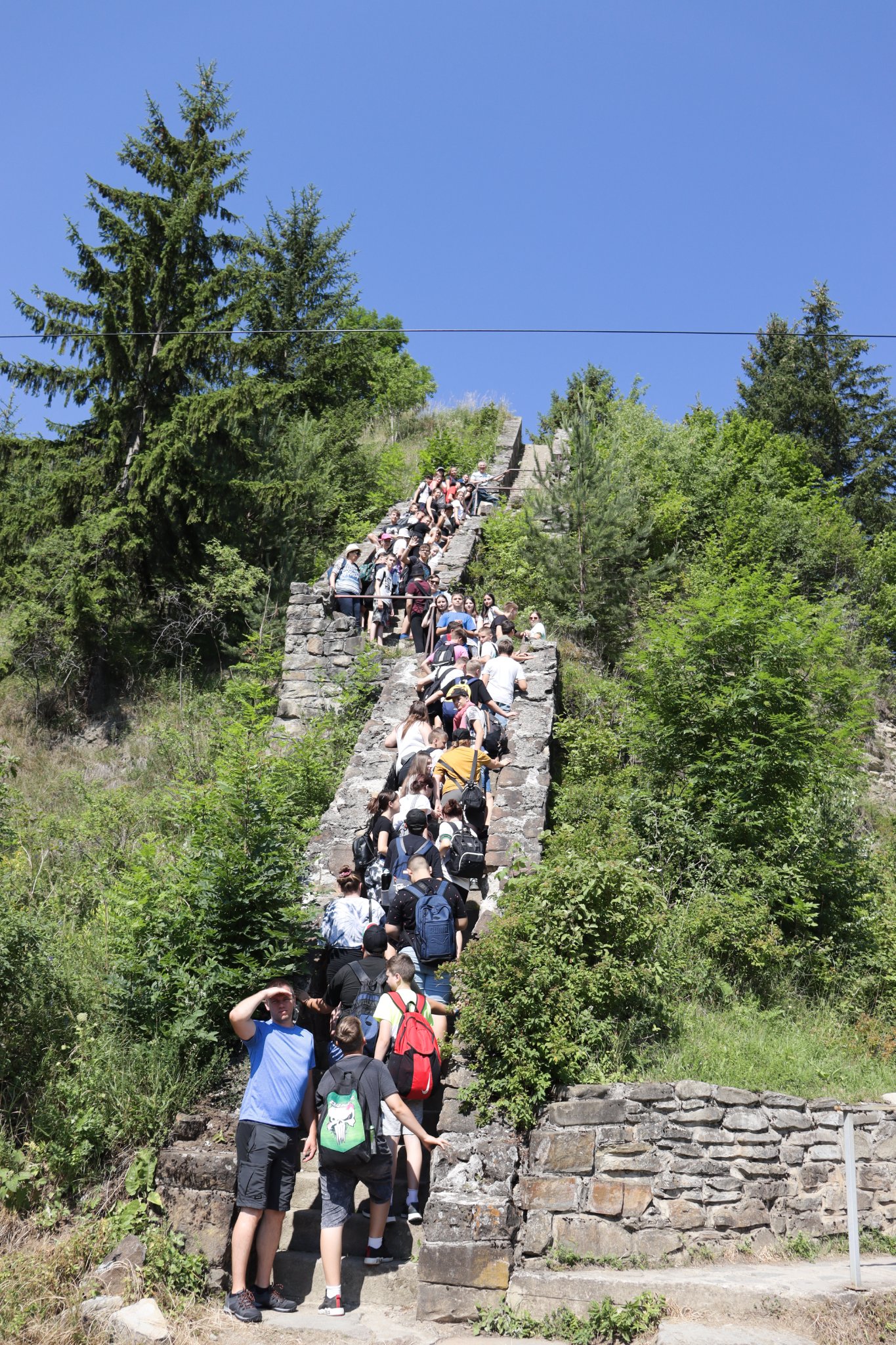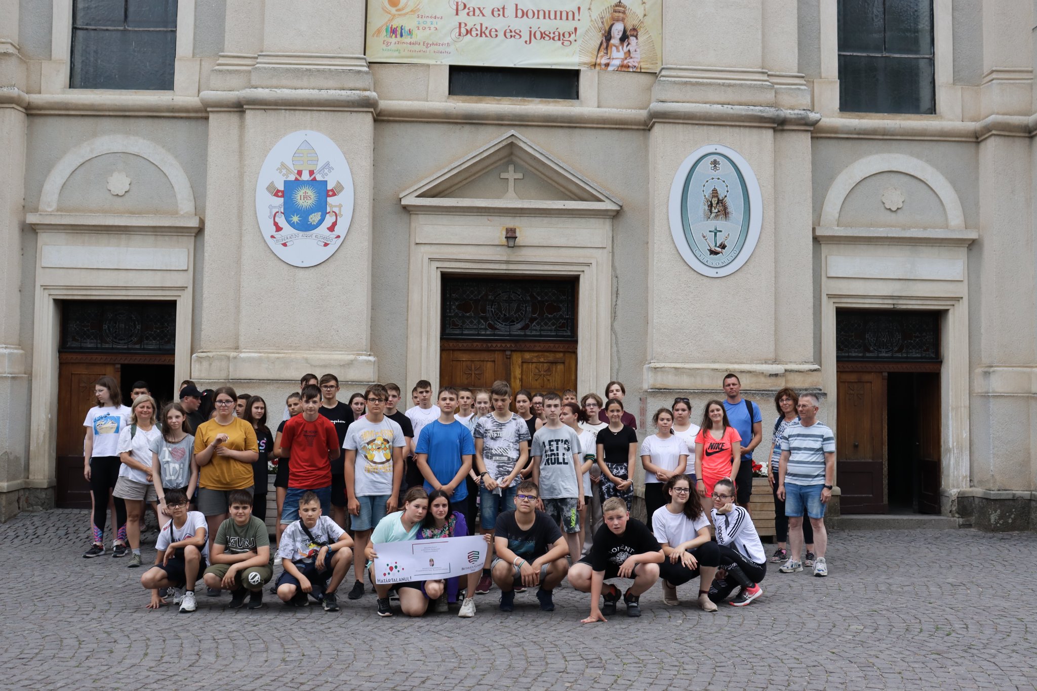 Csütörtökön a Gyimesi-szoros a Magyar Királyság egykori legkeletibb vasúti őrházához vezetett az első utunk. A hőség ellenére felmásztunk a Rákóczi romvárhoz, ahol pazar kilátás fogadott bennünket. Gyimesben természetesen gyerekek lévén nem hagyhattuk ki a SKIGYIMES bobpályát sem. Nagyon élveztük. Katolikus iskola diákjaiként fontosnak tartottuk, hogy ellátogassunk Csíksomlyóra a székelyek legfontosabb zarándokhelyére. A megerőltető hegymenetet mindenki valami szándékra ajánlotta fel. Ez volt a mi egyedi zarándokutunk a nyeregoltárhoz. A lefelé vezető út az Alföldi „fenyegyerekeknek” sok megpróbáltatást tartogatott?!? A faluban a Csíksomlyói kegytemplomban hálát adtunk a Szűz Anya szobránál. Hazafele Makovecz Imre az organikus építészet képviselőjének egyik remekművét a Csíkszeredai plébániatemplomot csodálhattuk meg. A beszámolót 7.a osztályos tanulónk írta.