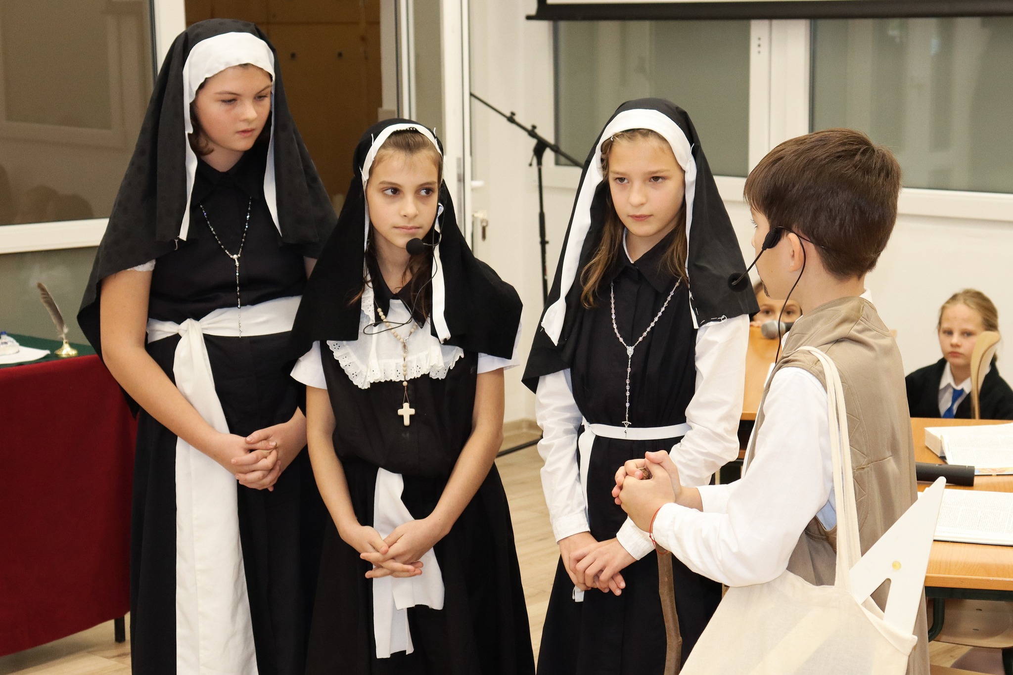 Iskolánk katolikus fennállásának 25. jubileuma alkalmából idén az Egyházmegyei Színjátszó Találkozónkat „szentnek lenni, szentté válni” jelmondattal rendeztük meg. Az szerdai alkalommal iskolánk színjátszó csoportja mellett darabot mutatott be az intézményük névadójáról a keceli II. János Pál Katolikus Általános Iskola és a jánoshalmi Szent Anna Katolikus Általános Iskola.