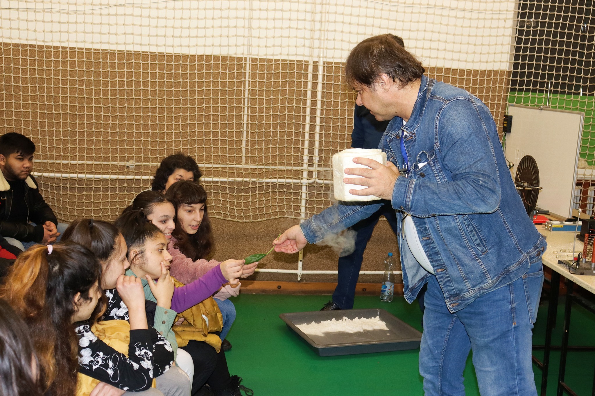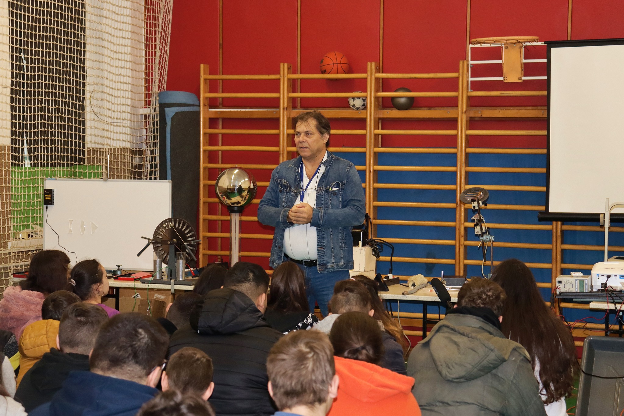 Ignácz Ferenc a szegedi egyetem mesteroktatója tartott fizika tantárgy témaköreiből bemutatót tanulóinknak és a meghívott vendéginknek. Fénytanból a látható és az érzékelésünkön kívül eső fényt és annak jellemzőit ismerhettük meg az első részben. Az elektrosztatika is megjelent a bemutatóban. Nagy sikere volt a Tesla transzformátornak is. A látványos kísérletek a száraz jéggel és a folyékony nitrogénnel folytatódtak és bűvölték el a gyerekeket, tanárokat. Ilyen érdekes nálunk a fizika!