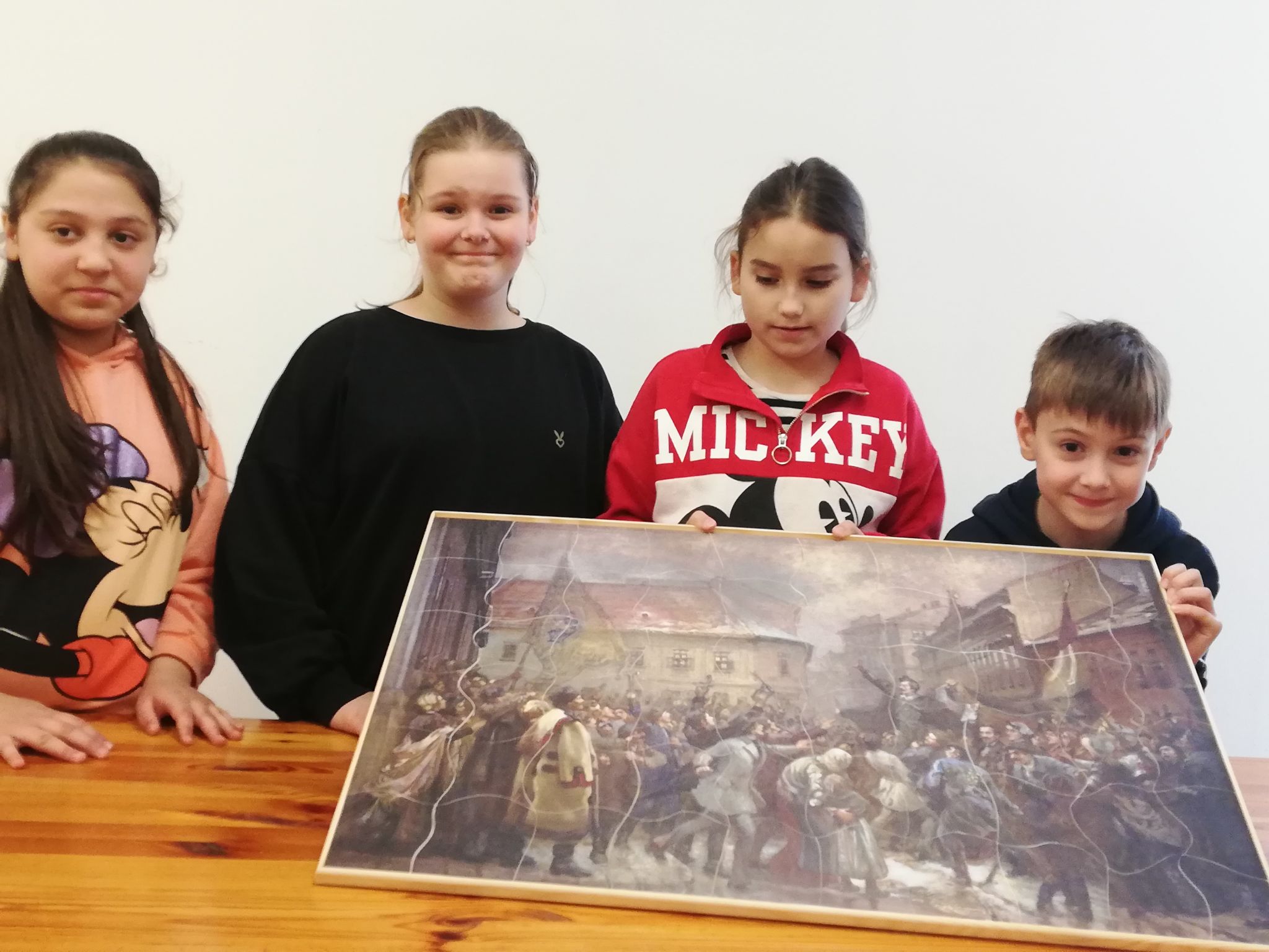 Nemzeti ünnepünk alkalmával látogatást tettek iskolánk 3.b osztályos tanulói a Thorma János Múzeumba. Kollarics Gábor vezetésével a Talpra, magyar! című festményt szemügyre véve, betekintést nyerhettünk az 1848-49 március 15-i eseményekbe. Ezt játékos foglalkozás követte.