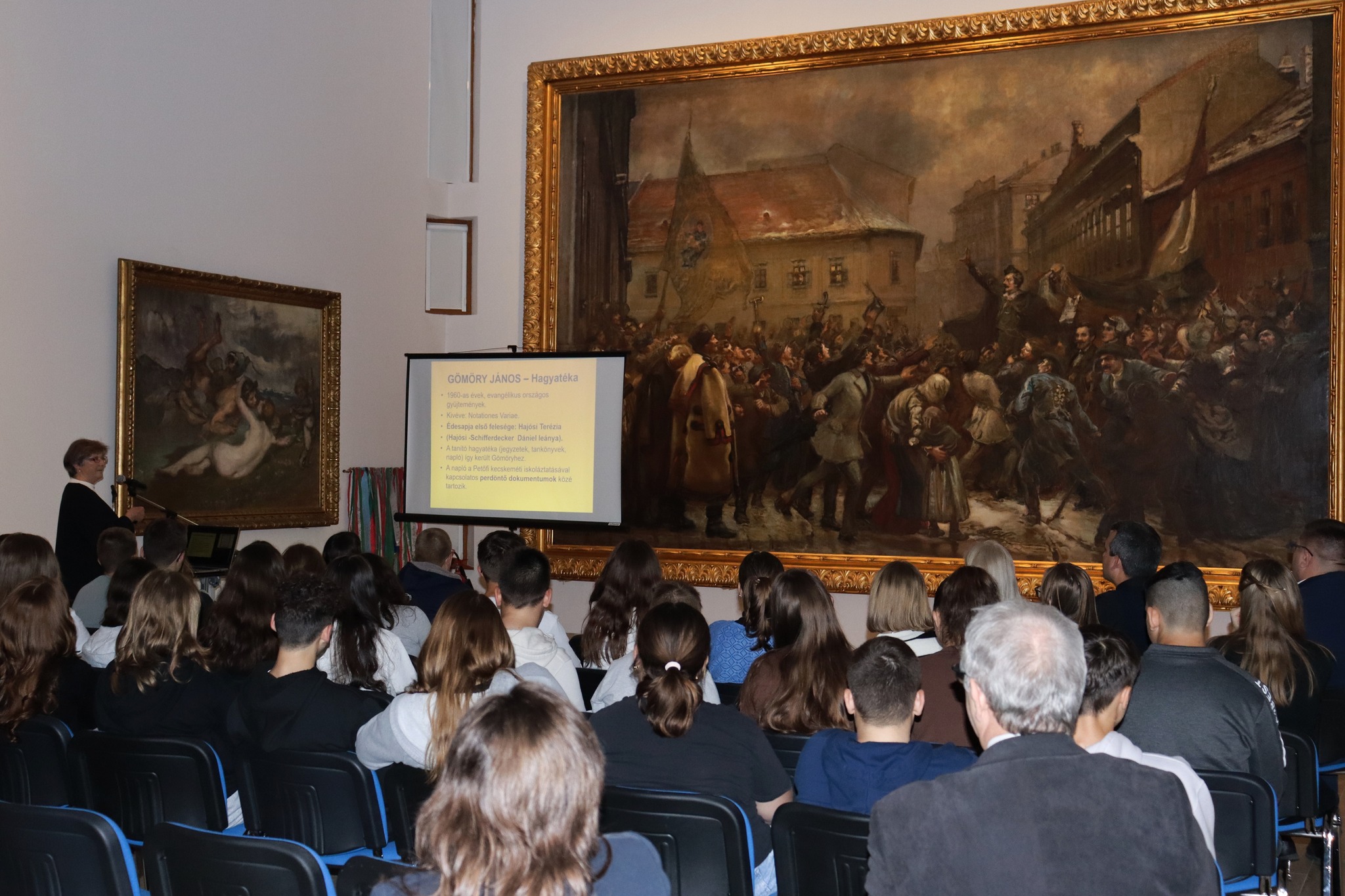 A 2022/23 tanévben iskolánk számos programot szervezett a Petőfi 200 emlékév kapcsán, hogy tanulóinknak minél több ismeretet nyújtsunk a megye legjelentősebb költőjéről. Ezen programsorozat mostani alkalma, azért volt különleges, mert a város összes iskolájának lehetősége volt küldöttjeivel részt venni, a Thorma János Múzeummal közösen szervezett előadáson, melyet Székelyné Kőrösi Ilona, Megyei Príma- díjas, történész, etnográfus, a diák Petőfiről tartott.