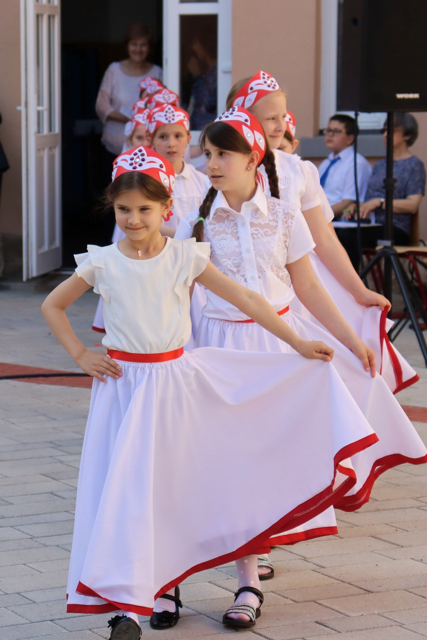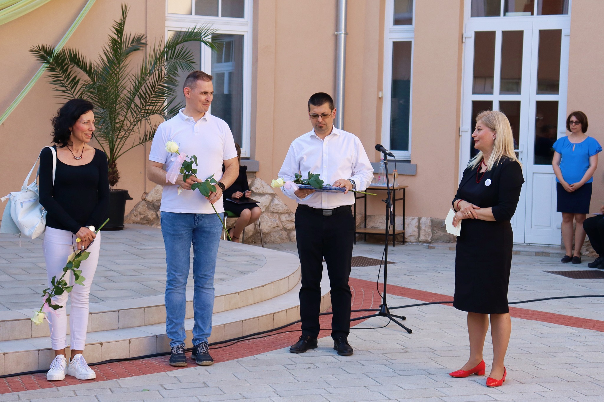 Május 24-én délután új programmal leptük meg az érdeklődőket. A hagyományteremtő Zenélő díszudvar a muzsikával kapcsolatos tehetségeket vonultatta fel iskolánkból. A vidám hangulatú előadáson felléptek a fúvós zenekar tagjai, a néptáncosok, az iskolai gyermekkórus, a kisiskolások és végzősök, továbbá egyéni hangszeresek. Az őket felkészítő pedagógusokat igazgatónő köszöntötte. A Zenélő díszudvar című programunk keretében Dózsáné Mohos Mónika igazgatónő, az általa alapított Szent Ágoston Művészeti díjat adományozta Kovács Kata 7. évfolyamos, kiemelkedően tehetséges diákunknak. Gratulálunk!