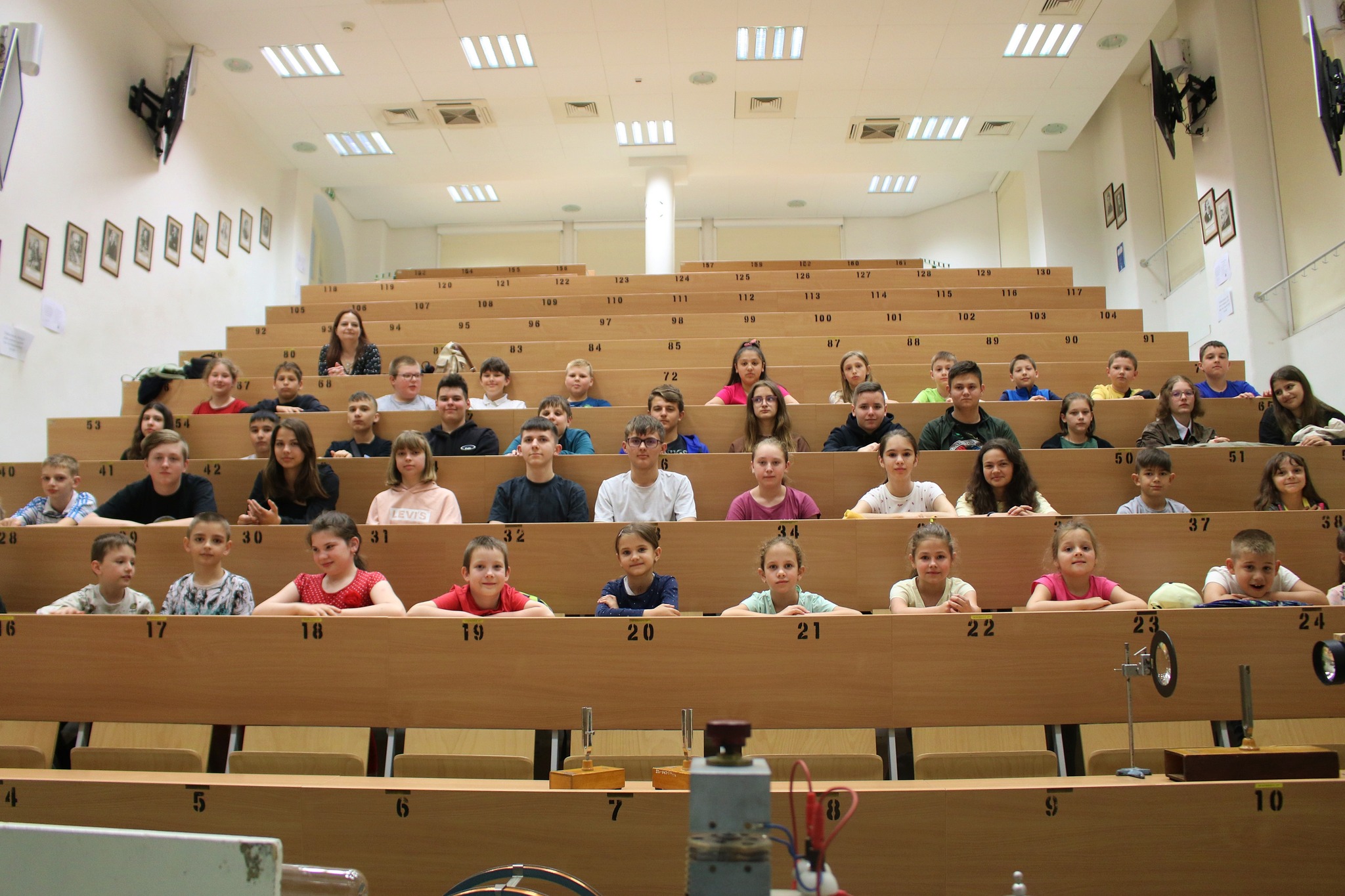 Délelőtt a Szegedi Tudományegyetemen izgalmas és látványos kísérletekkel varázsolta el a gyerekeket Ignácz Ferenc tanár úr. Délután a Földrajz tanészen a kisebbek egy virtuális időutazást tettek a sokmillió éves fosszíliák világába, a nagyobbak pedig egy interaktív előadást hallgattak meg a szegedi árvízről. Köszönjük az Alsóvárosi Diáktársaságnak (AD) a program megszervezését és anyagi támogatását.