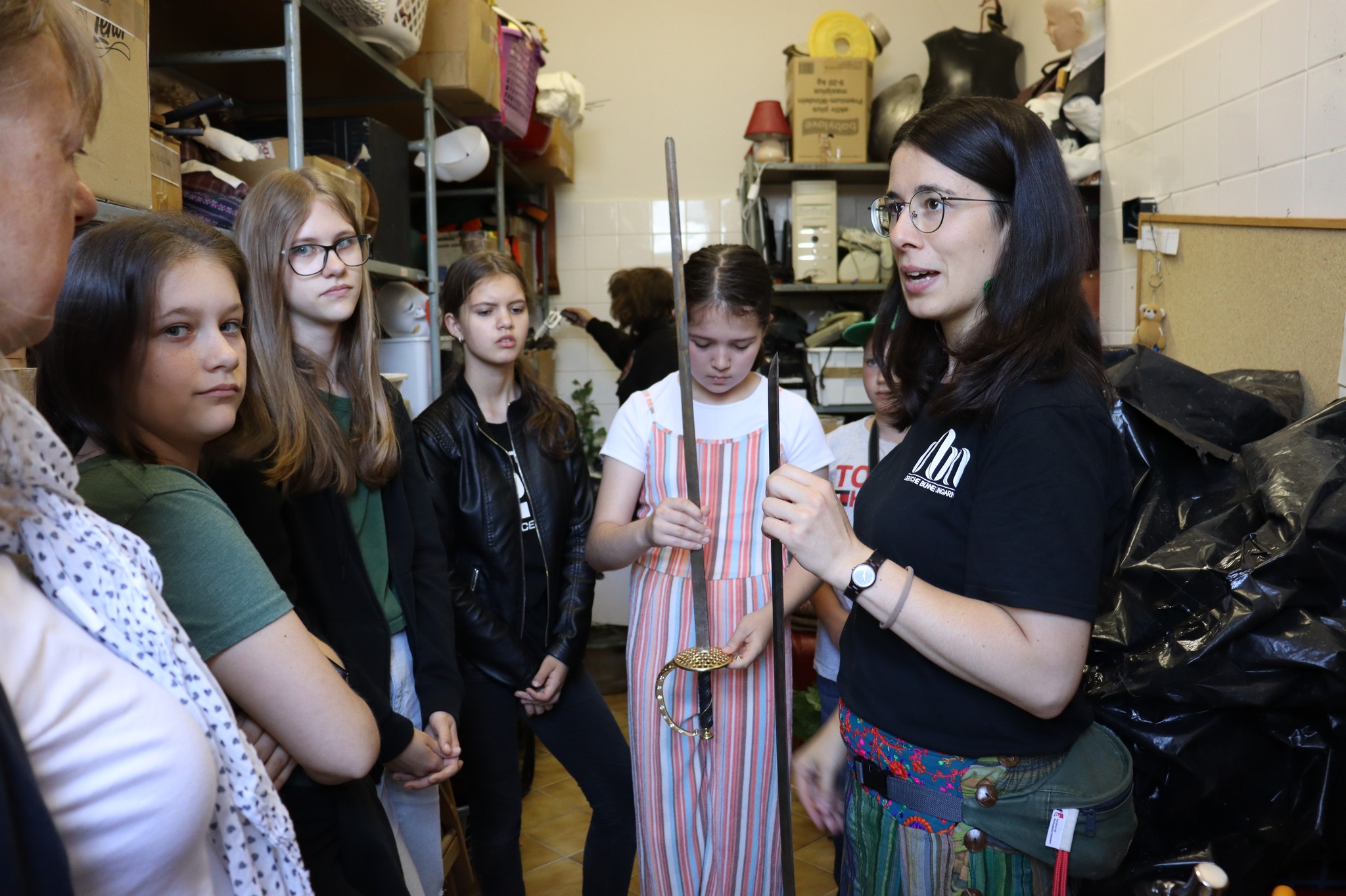 2023.06.12-én a német nemzetiségi nyelvet tanuló csoportjainkkal ismét a szekszárdi Német Színházban jártunk, de ezúttal rendhagyó módon a színfalak mögé tekintettünk be. Megtudtuk mit csinál az ügyelő, hol dolgoznak a technikusok, milyen is a kelléktár, sőt egy-két kelléket ki is próbálhattunk.