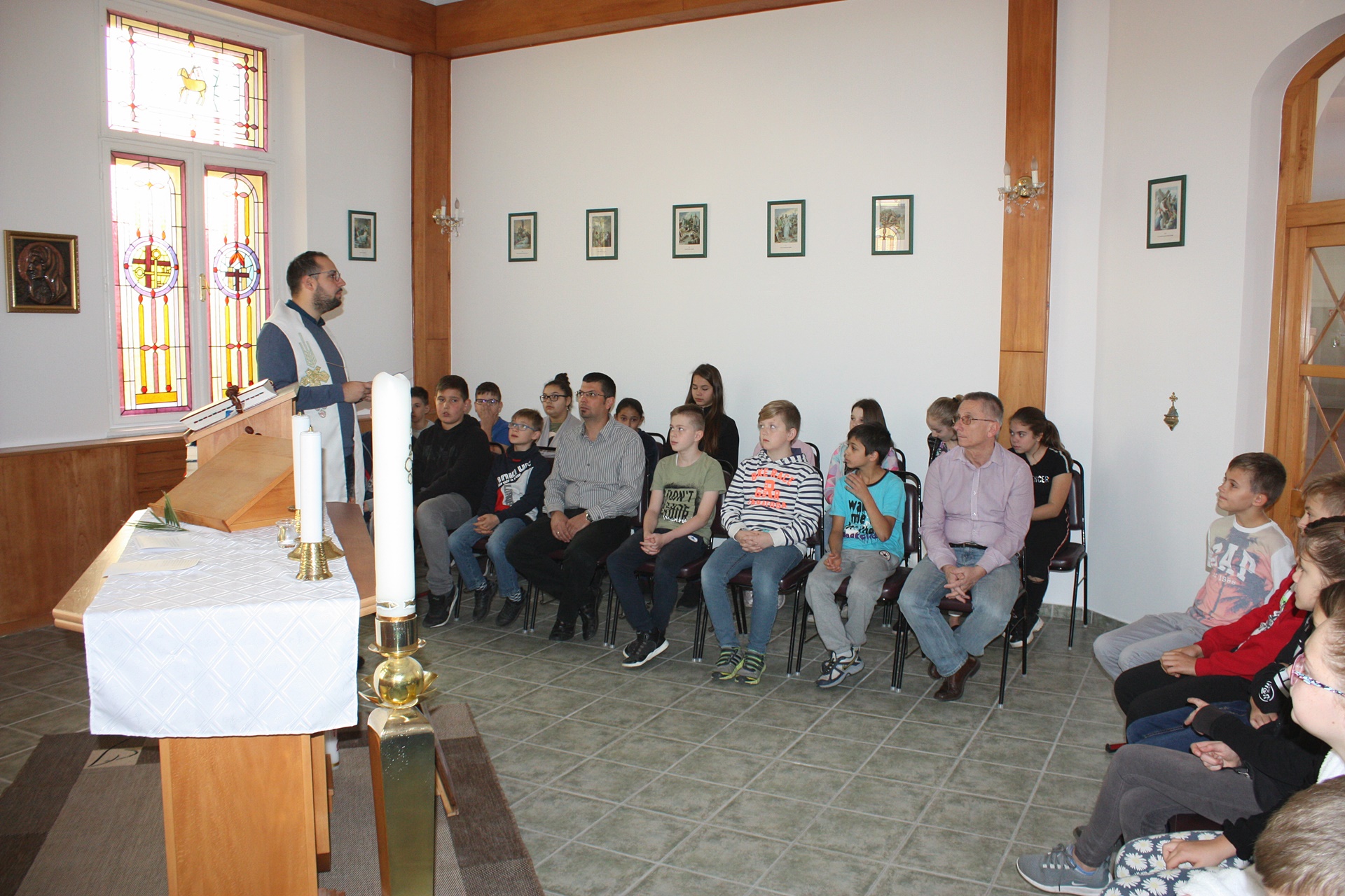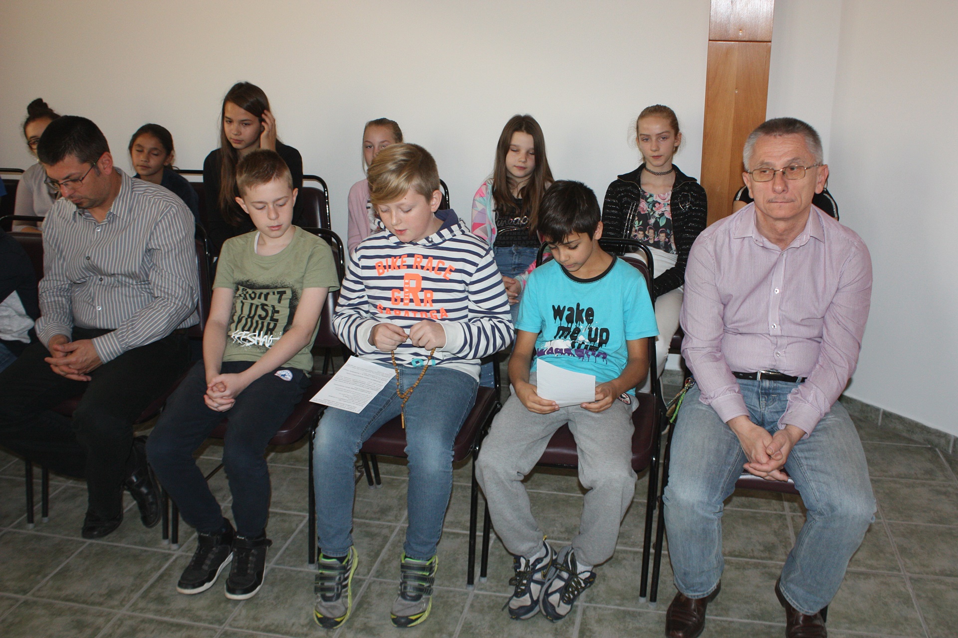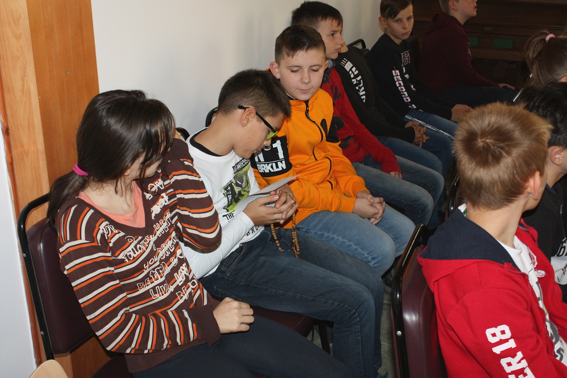 A Szükséget Szenvedő Egyház (Kirche in Not) nemzetközi segélyszervezet immár tizenkét éve minden évben, október 18-án arra hívja a gyermekeket az egész világon, hogy közösen imádkozzák a rózsafüzért a világ békéjéért. Az 5. évfolyamos katolikus diákokkal csatlakoztunk a felhíváshoz, és fohászkodtunk Szűz Máriához, Béke Királynőjéhez. Az imádság elején megáldásra került a gyermekek által készített szentolvasó.