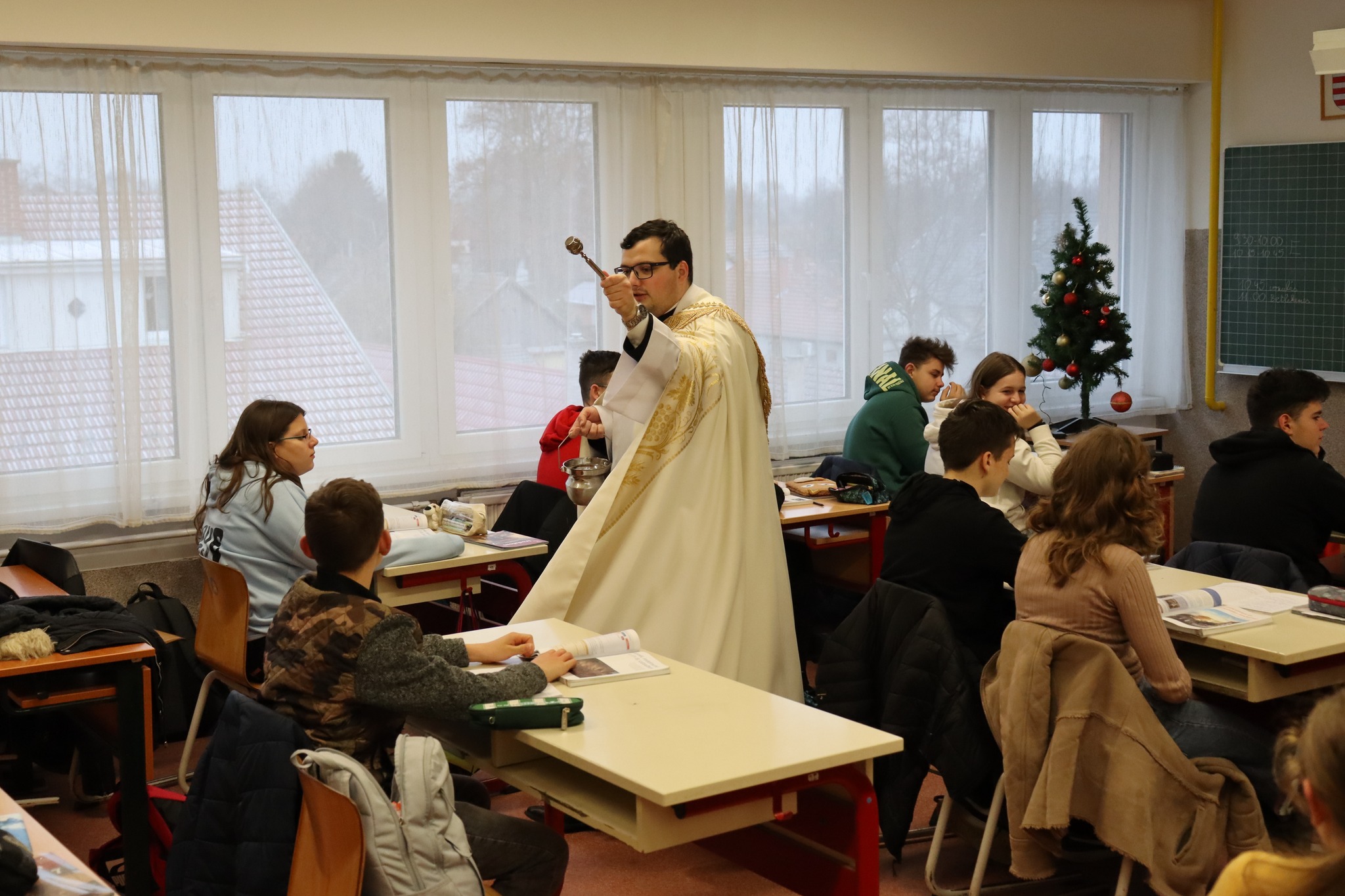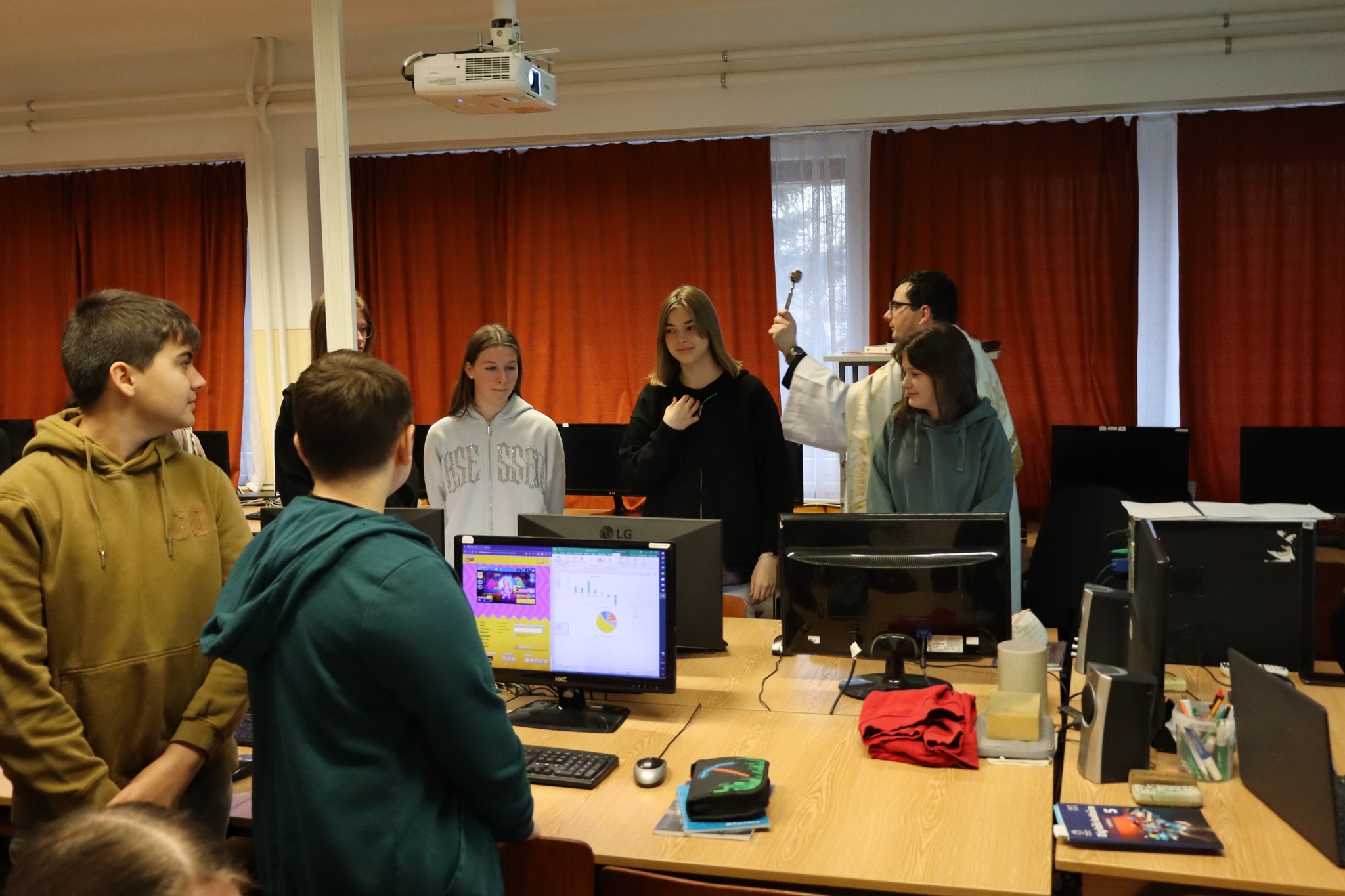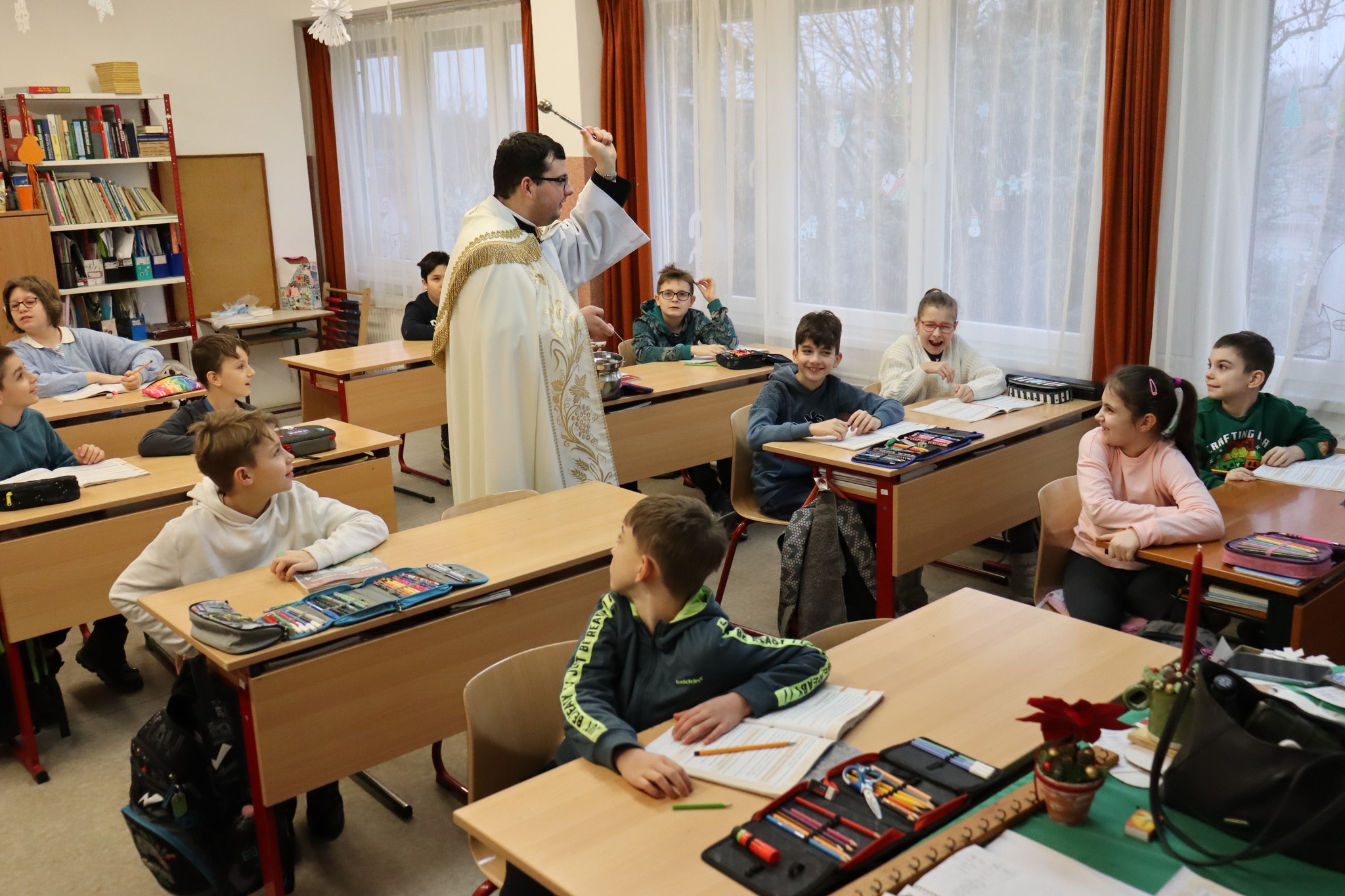 Az újév első tanítási napja is már szép pillanatokat szerzett iskolánk diákjainak és dolgozóinak egyaránt. Az évet egy közös intézményi szentmisével kezdtük, melyet Attila atya és Tibor atya közösen tartott. Köszönet a három király ajándékának értelmezéséért, a tanításért és az osztály-, illetve iskolaszentelésért. Boldog új évet kívánunk minden kedves tanulónknak és szüleiknek!