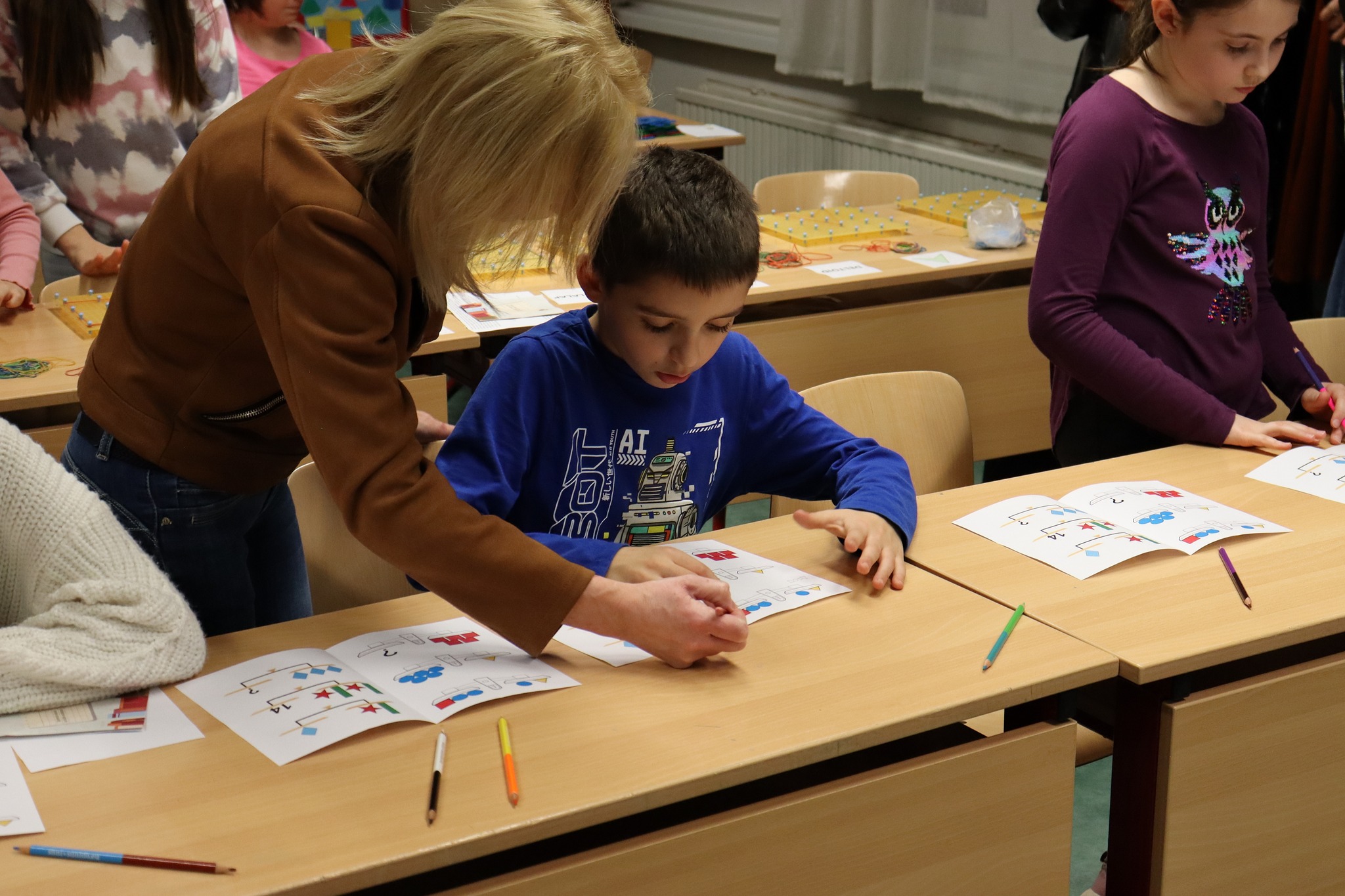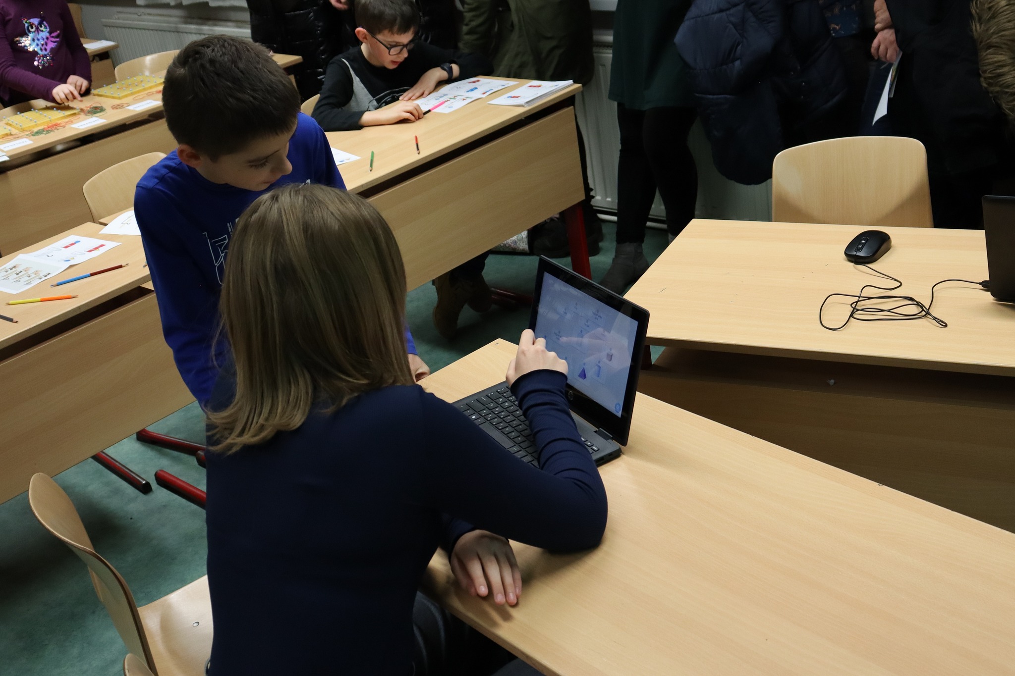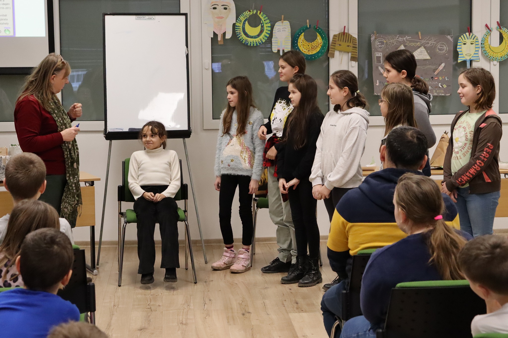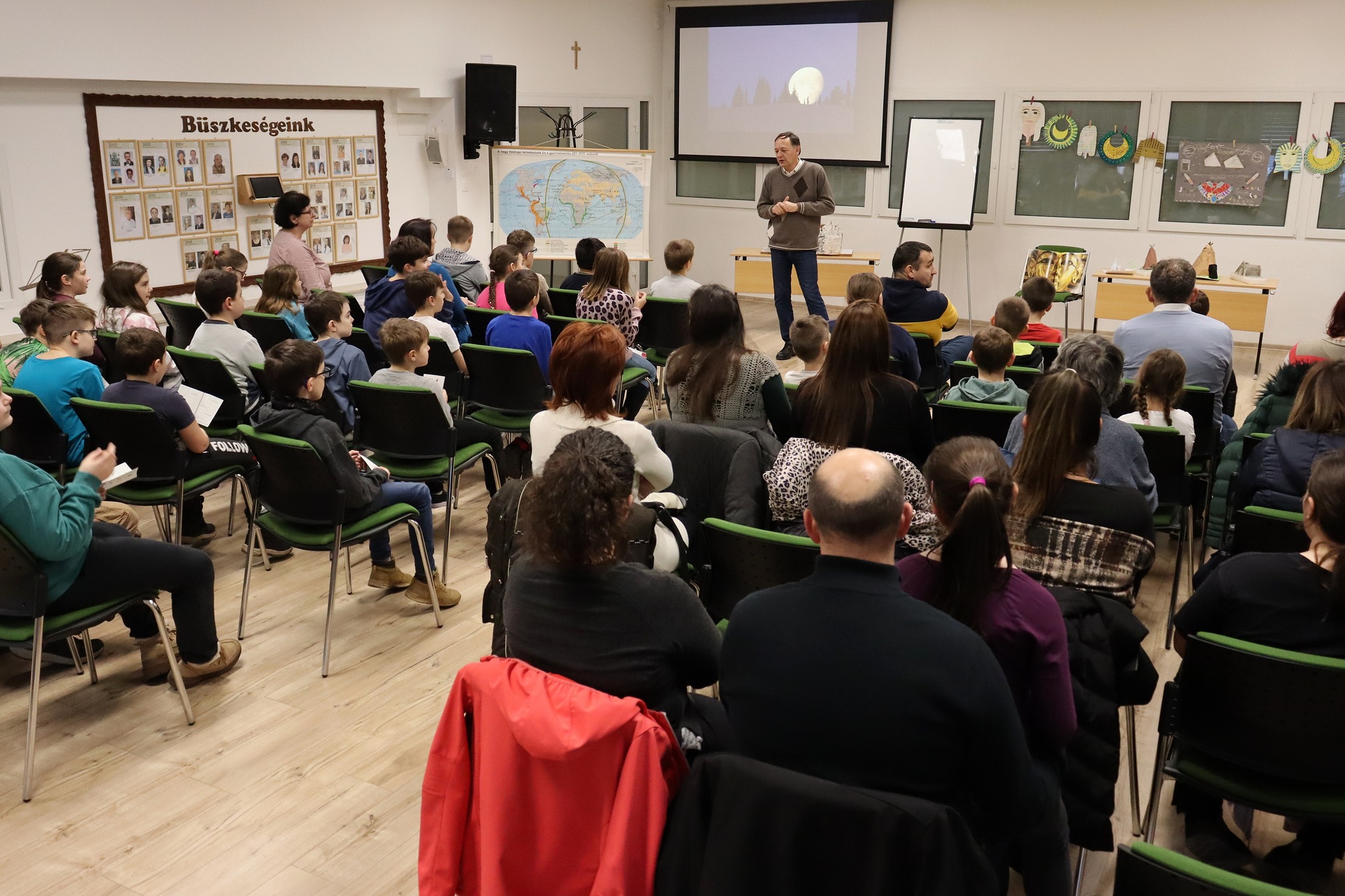 A felső tagozaton tanító tanárok szerveztek bemutatkozó délutánt az ötödik osztályba készülő diákok számára. A szaktantermekbe, tornaterembe szervezett állomásokon várták a feladatok a kisdiákokat, ahol bepillantást nyerhettek az új, számukra még nem ismert tantárgyak látványos fejezeteibe. A szülőket is meghívtuk erre az alkalomra, hogy ők is megismerhessék iskolánk tanárait, és játékosan ismételjék a rég tanult dolgokat.