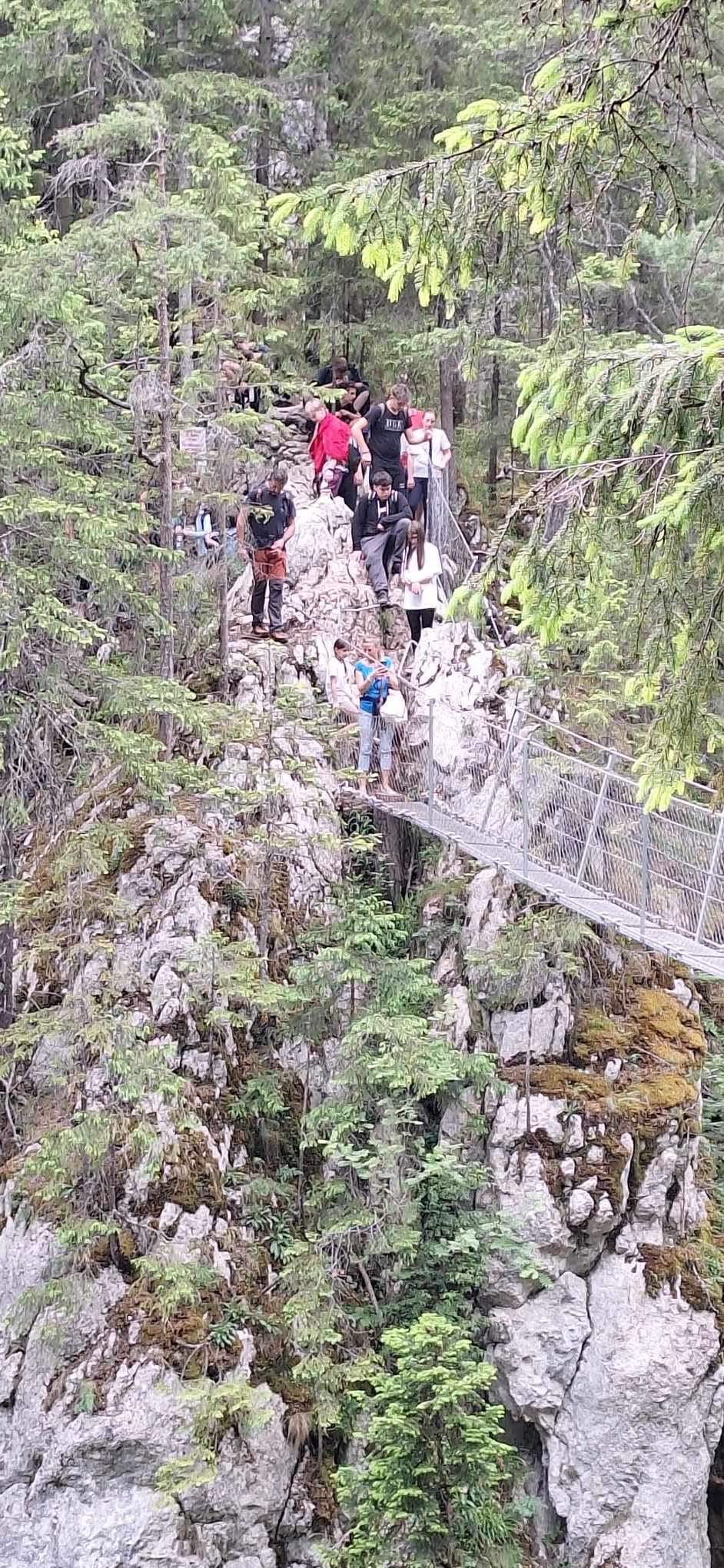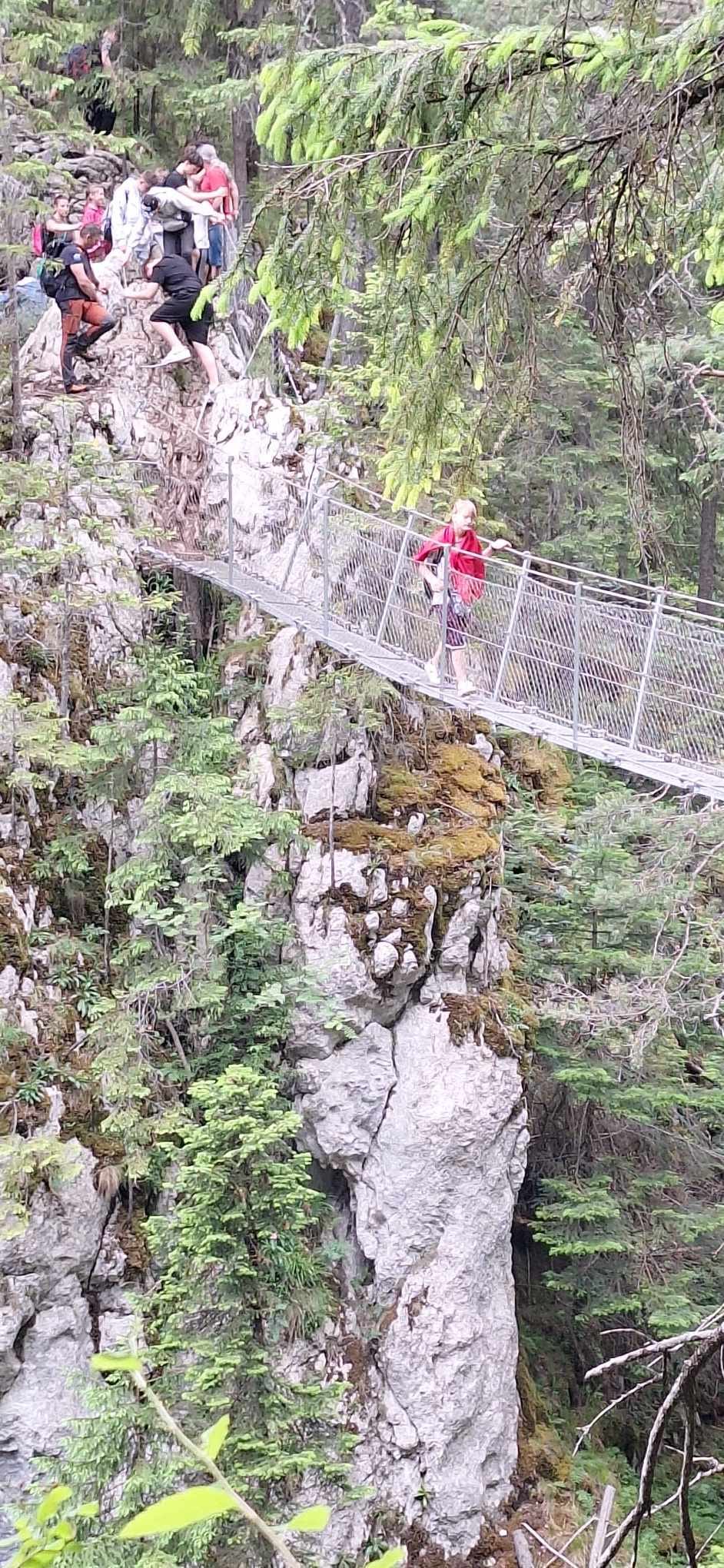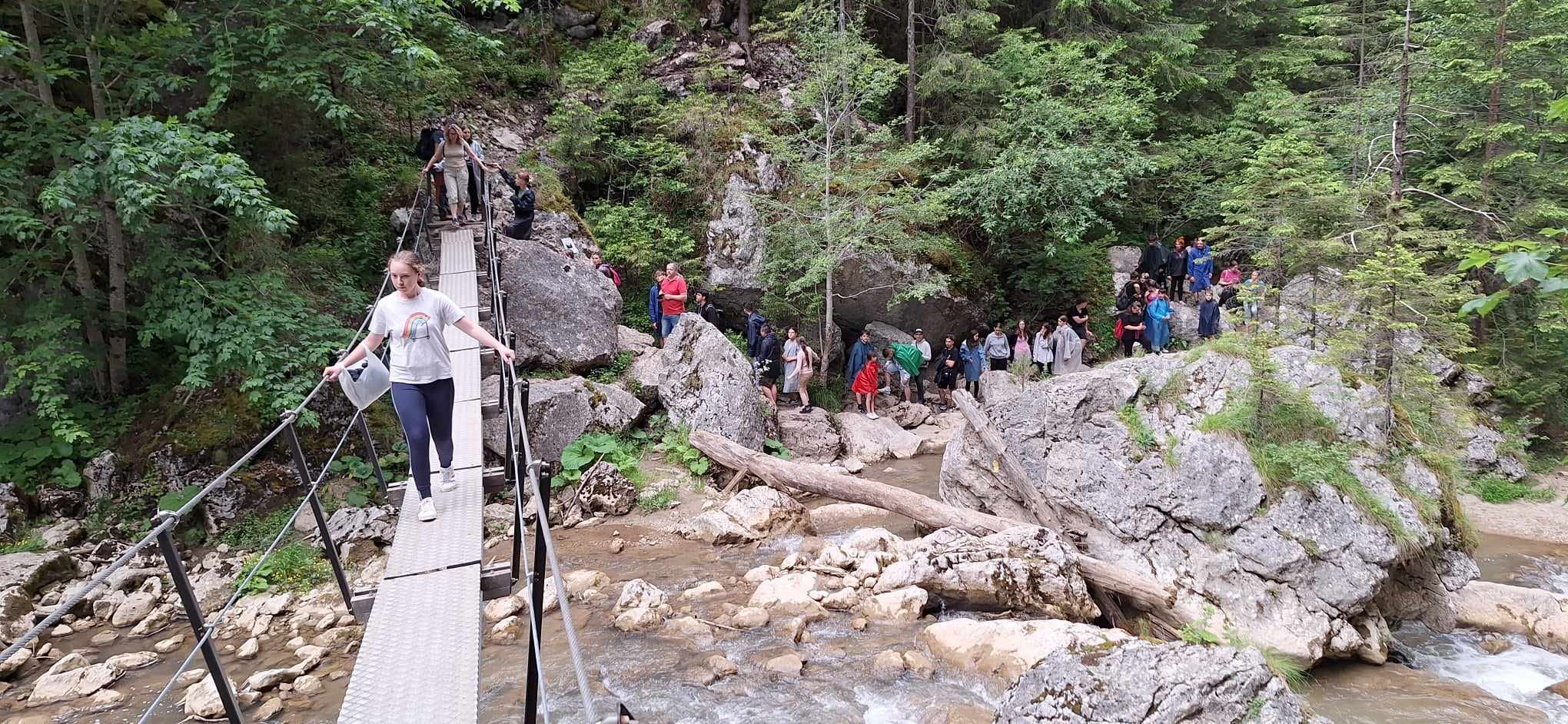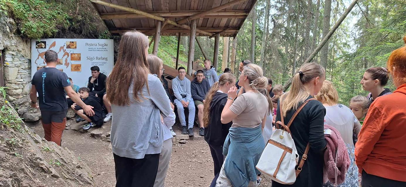 Kirándulásunk negyedik napjának egy részét a természetben töltöttük. Reggel Simon Laci bácsival ismerkedtünk meg, akinek vezetésével felfedeztük a Súgó‐barlangot és annak faunáját. A barlangászat után buszoztunk egy kicsit, közben Laci bácsi számtalan érdekességgel ismertetett meg minket a Gyergyói-medencével kapcsolatban. Amikor megérkeztünk a Békás-szoroshoz gyorsan leszálltunk a buszról és bevettük magunkat a Kis-Békás patak által vájt szurdokba. Kicsit elfáradtunk mire mind a kettő lengőhídon átmentünk, de a látvány amiben részünk volt minden fáradságot megért. Kijőve a szurdokból végigsétáltuk a Békás- szorost, majd a 7. a osztály segítségével megismertük a Gyilkos-tó keletkezésének földrajzi magyarázatát és ezt követően egy mondával is alátámasztották a hallottakat. A nap végén a gyergyóújfalui templomban Tomka Géza pap bácsi a szentmise után beszélgetett velünk, felhívta figyelmünket Szent István tiszteletére és égi édesanyánk, Szűz Mária szeretetére.