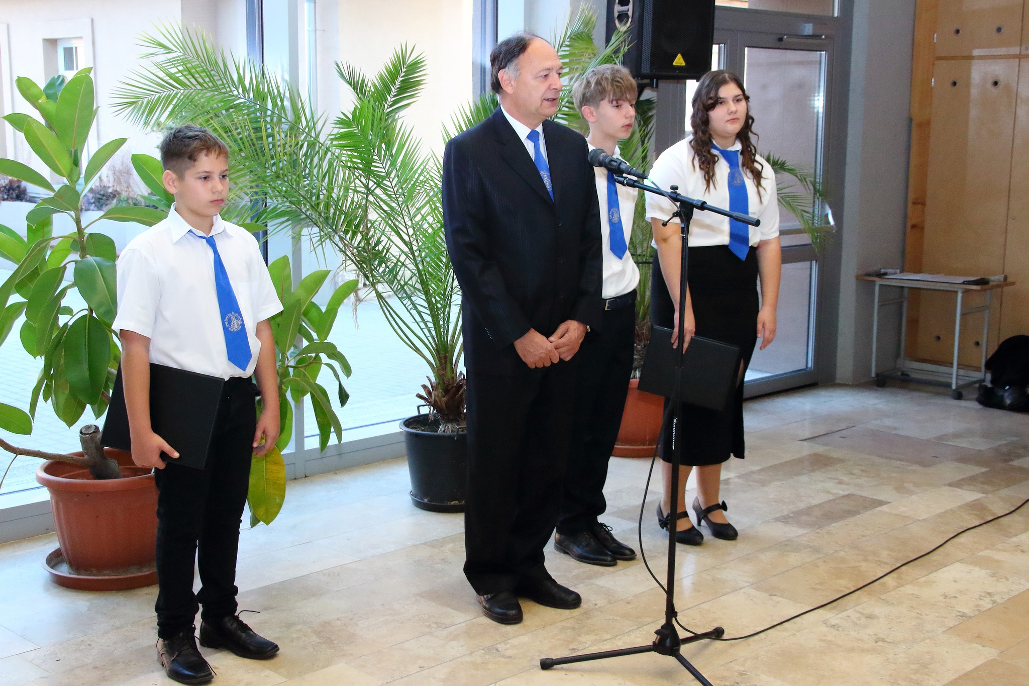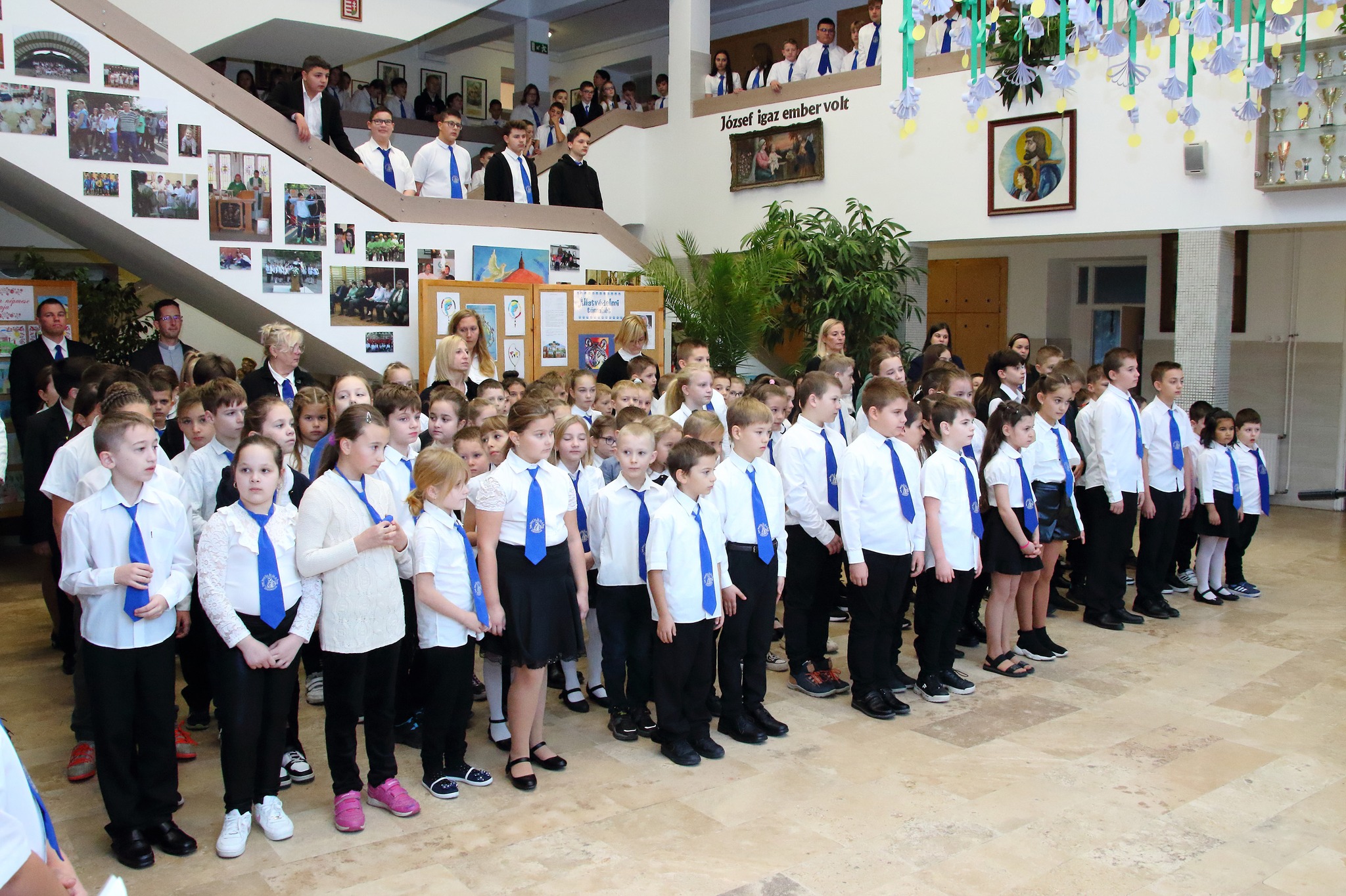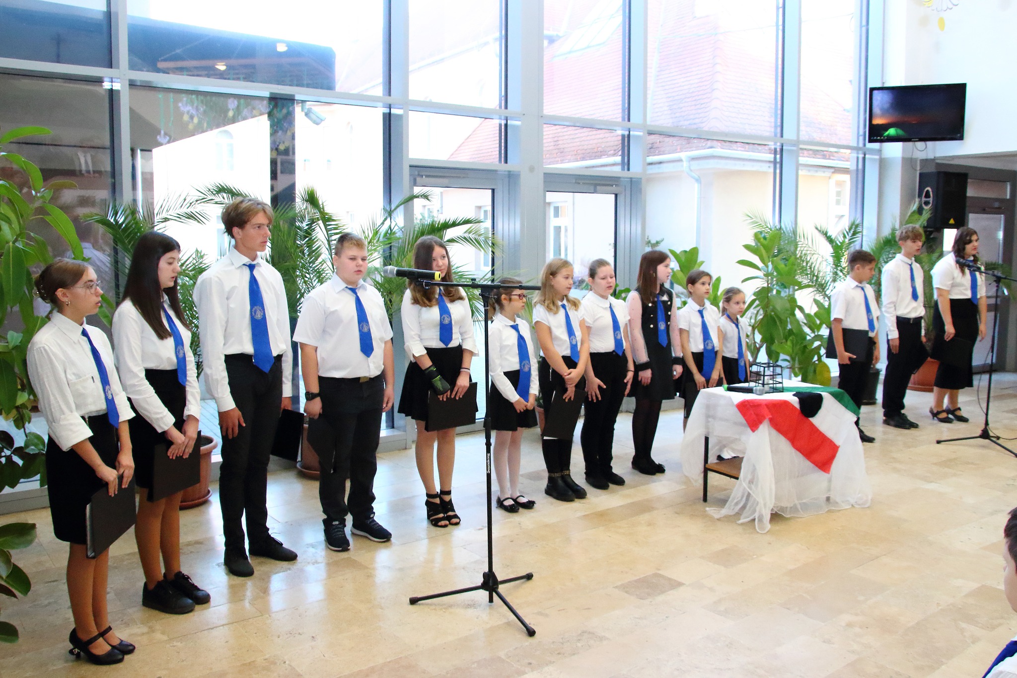 Az 1956-os forradalomról emlékeztünk meg a reggeli áhítaton. Az énekkar, a 4.b dalos pacsirtái és a 7.a osztály képviselői szolgáltatták a műsort az ünnep perceihez.