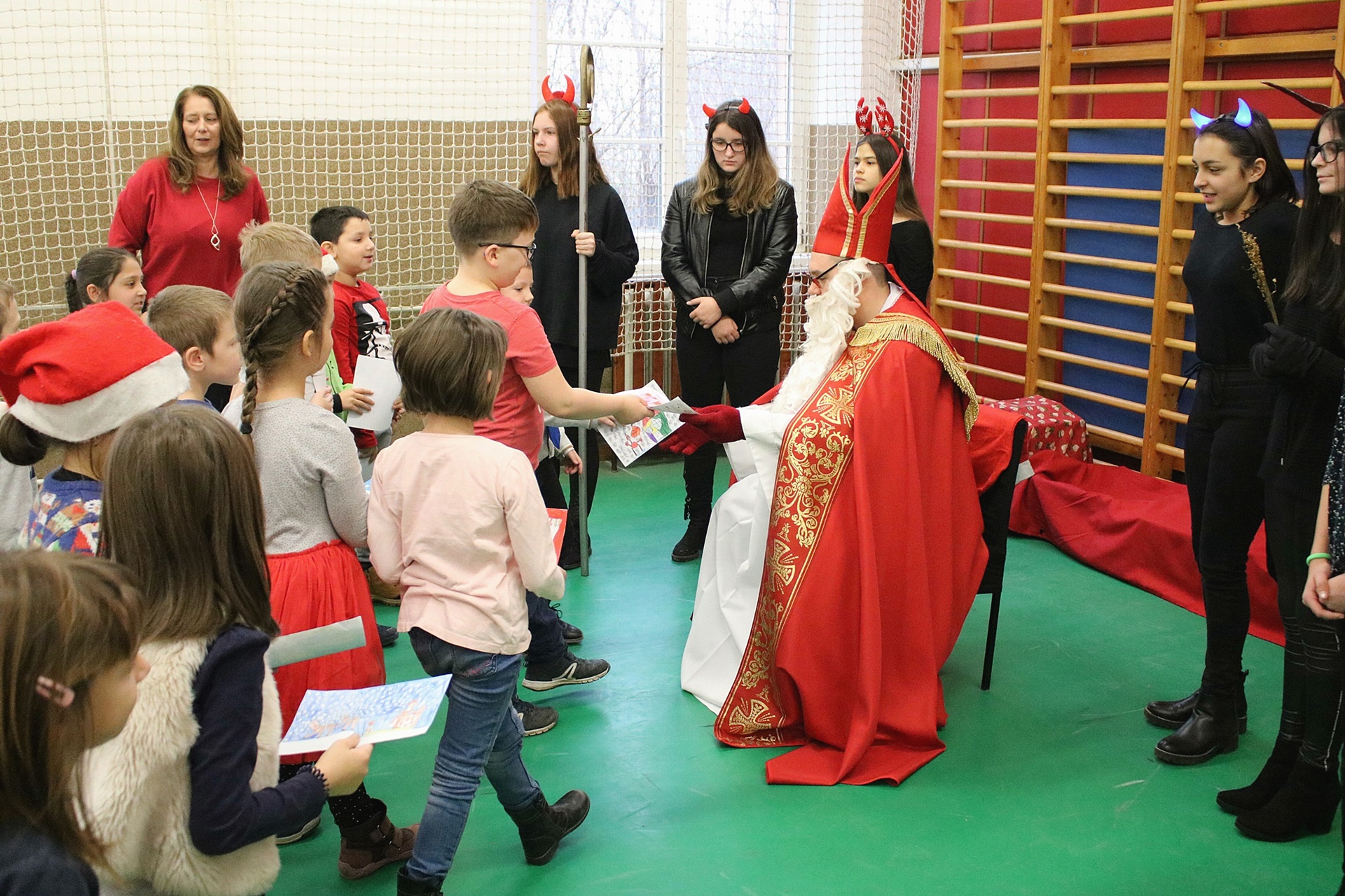 December 6-án ellátogatott iskolánkba Szent Miklós püspök. Az 1. 2. és a 3. évfolyamos gyerekek izgatottan, énekszóval fogadták . A 2.a osztályos tanulóink szép műsorral lepték meg vendégünket. Sok szép rajzzal, dallal köszönték meg a gyerekek Miklós püspök jóságát-s persze a csomagokat is!