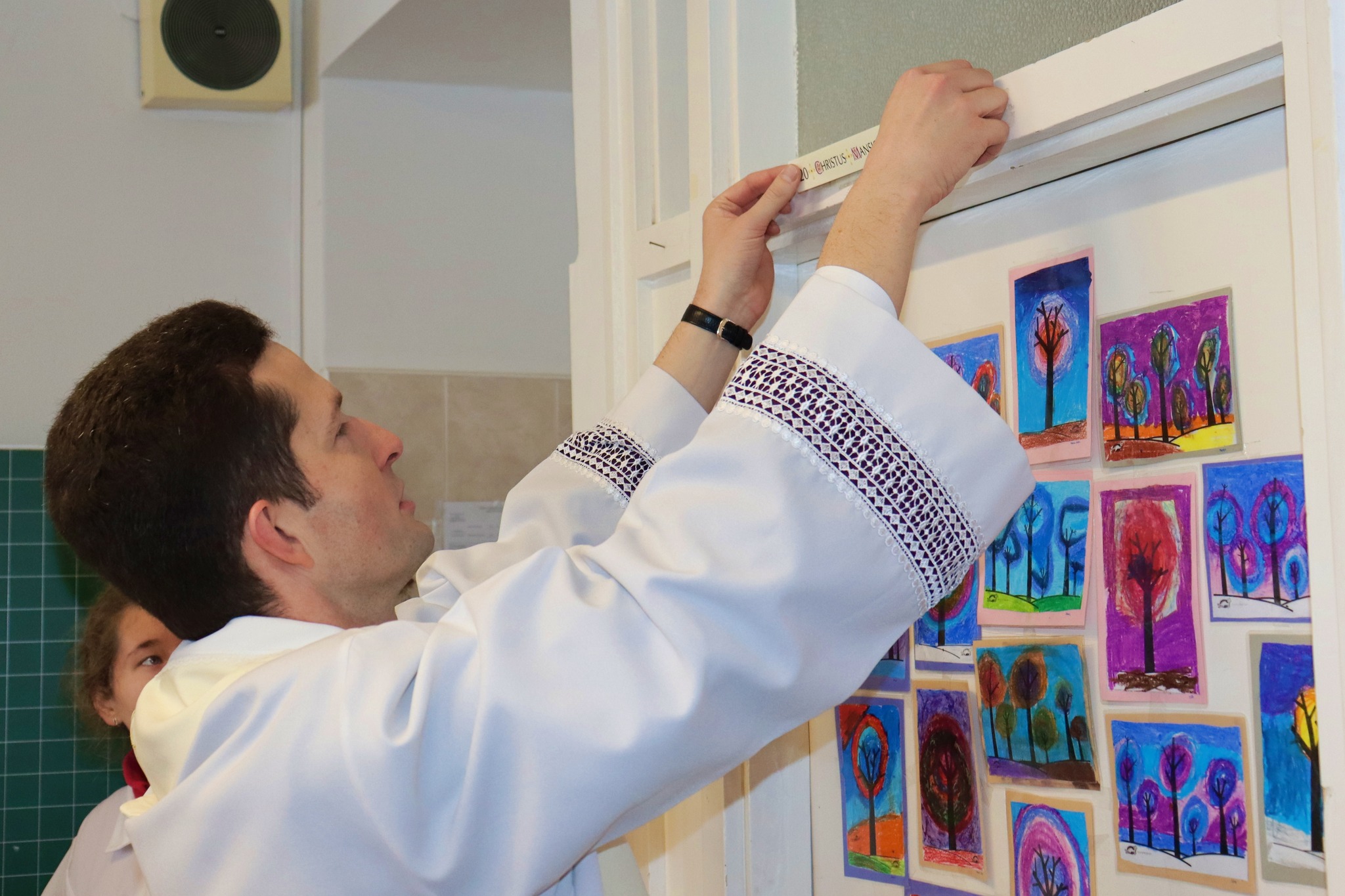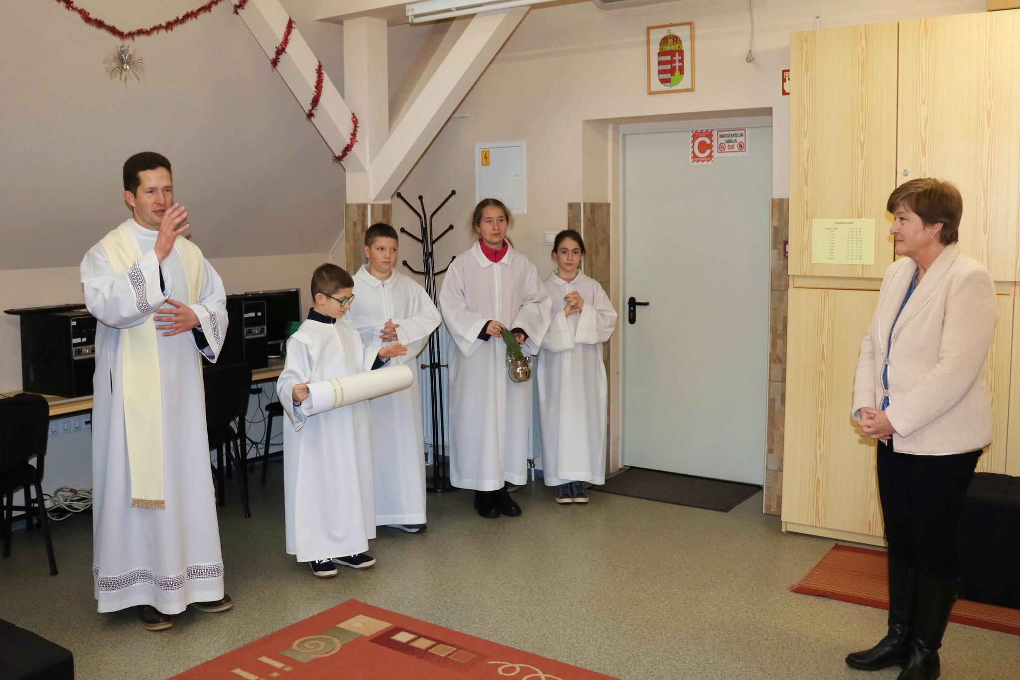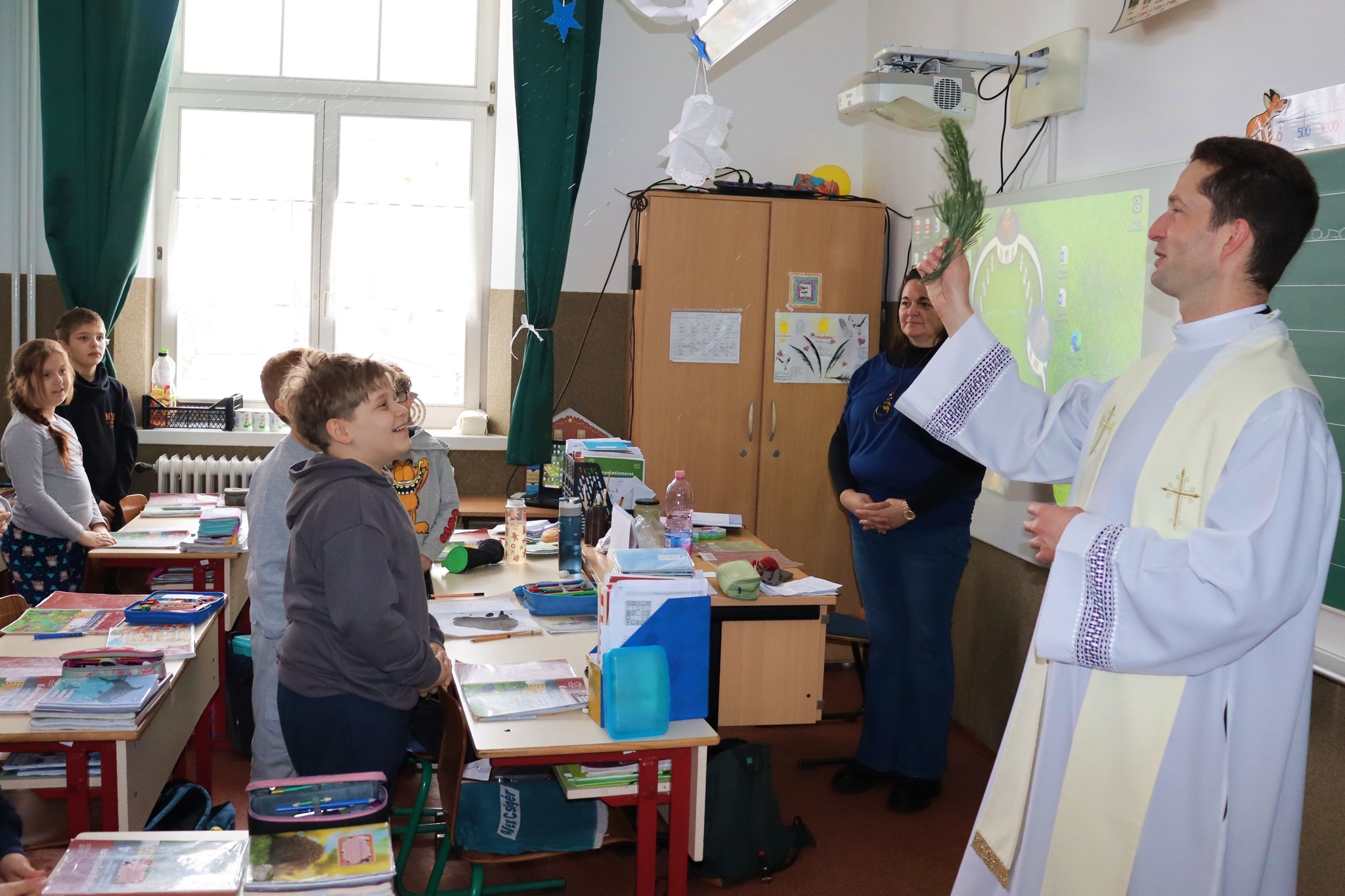 Ebből az alkalomból iskolánk tanulói szentmisén vettek részt, ahol közösen imádkoztunk és elcsendesedtünk az ünnep üzenetét átgondolva. A szentmisét követően Feri atya megáldotta az iskola épületében található helyiségeket, kérve Isten áldását diákjainkra, pedagógusainkra és az intézmény egész közösségére az előttünk álló időszakra.