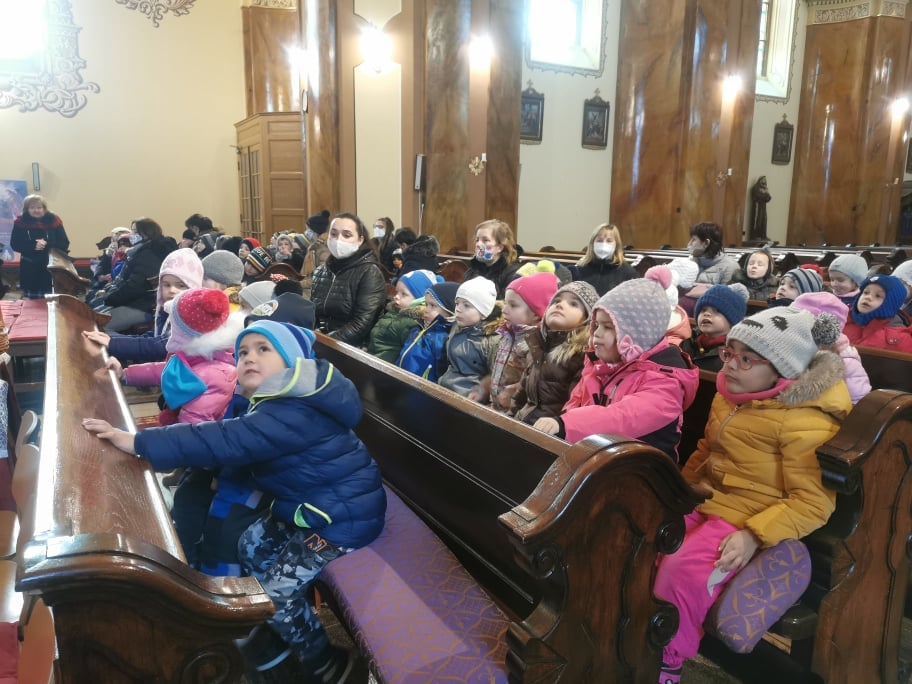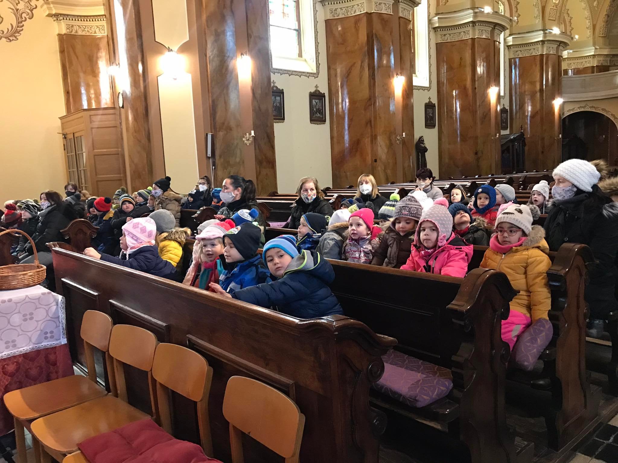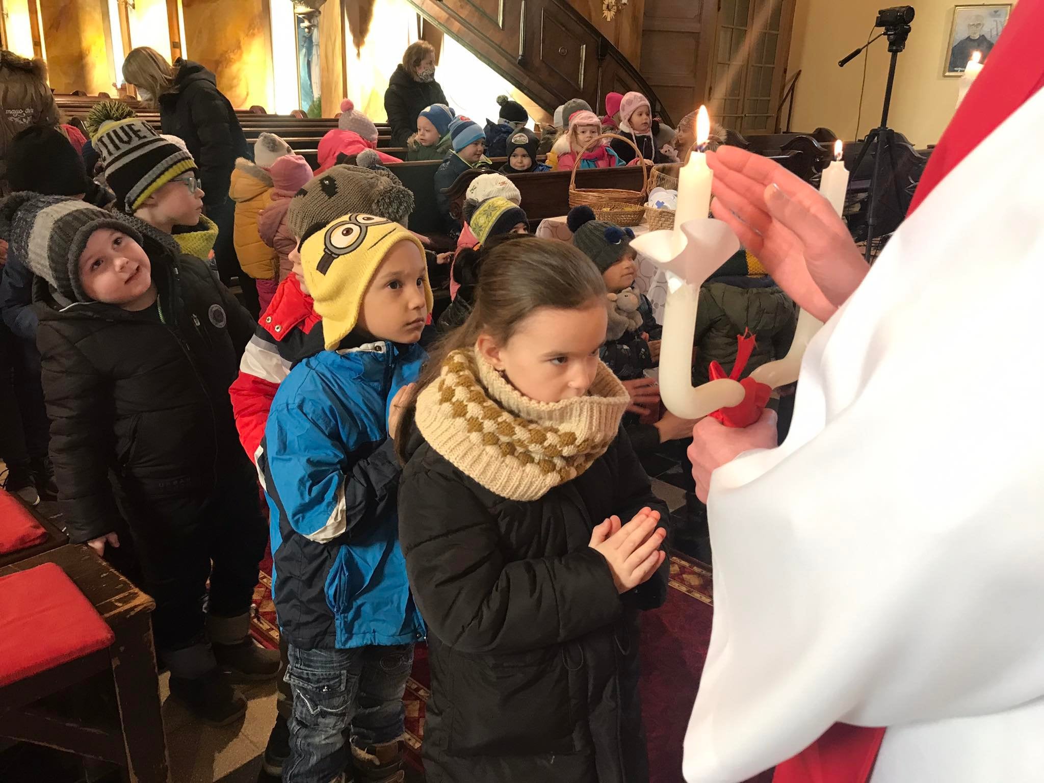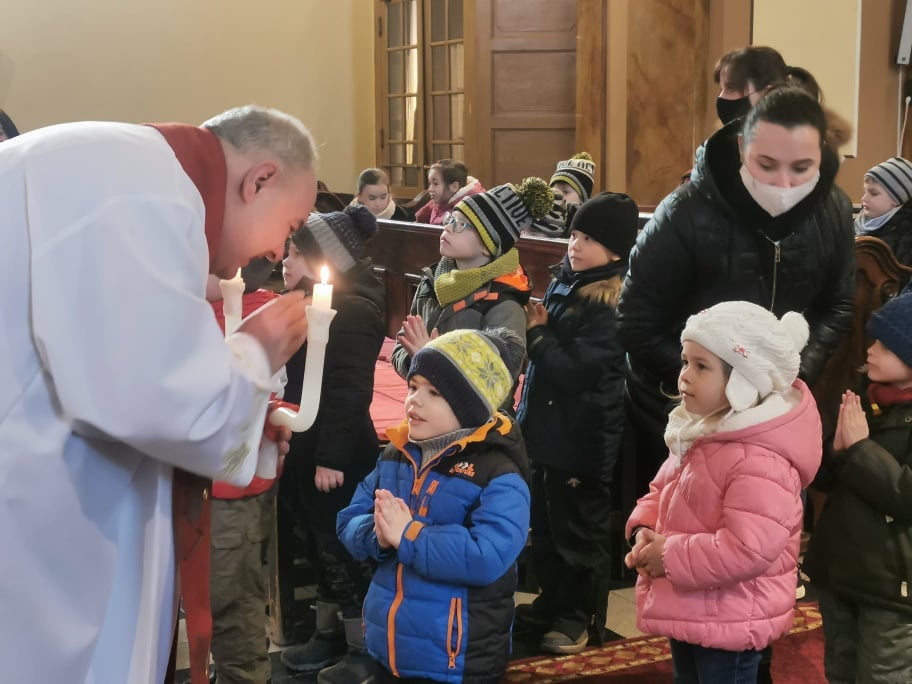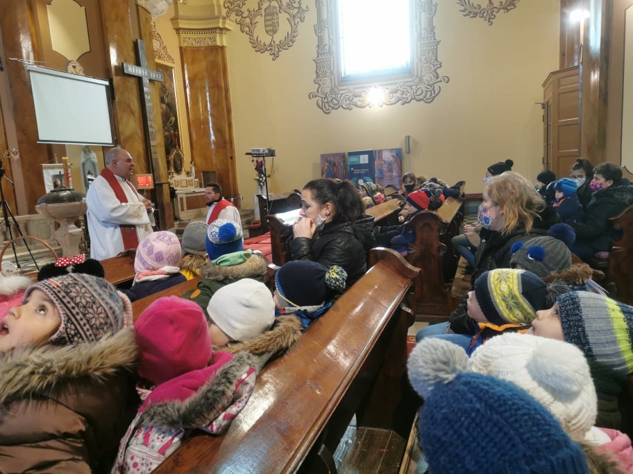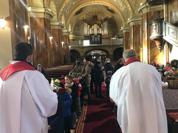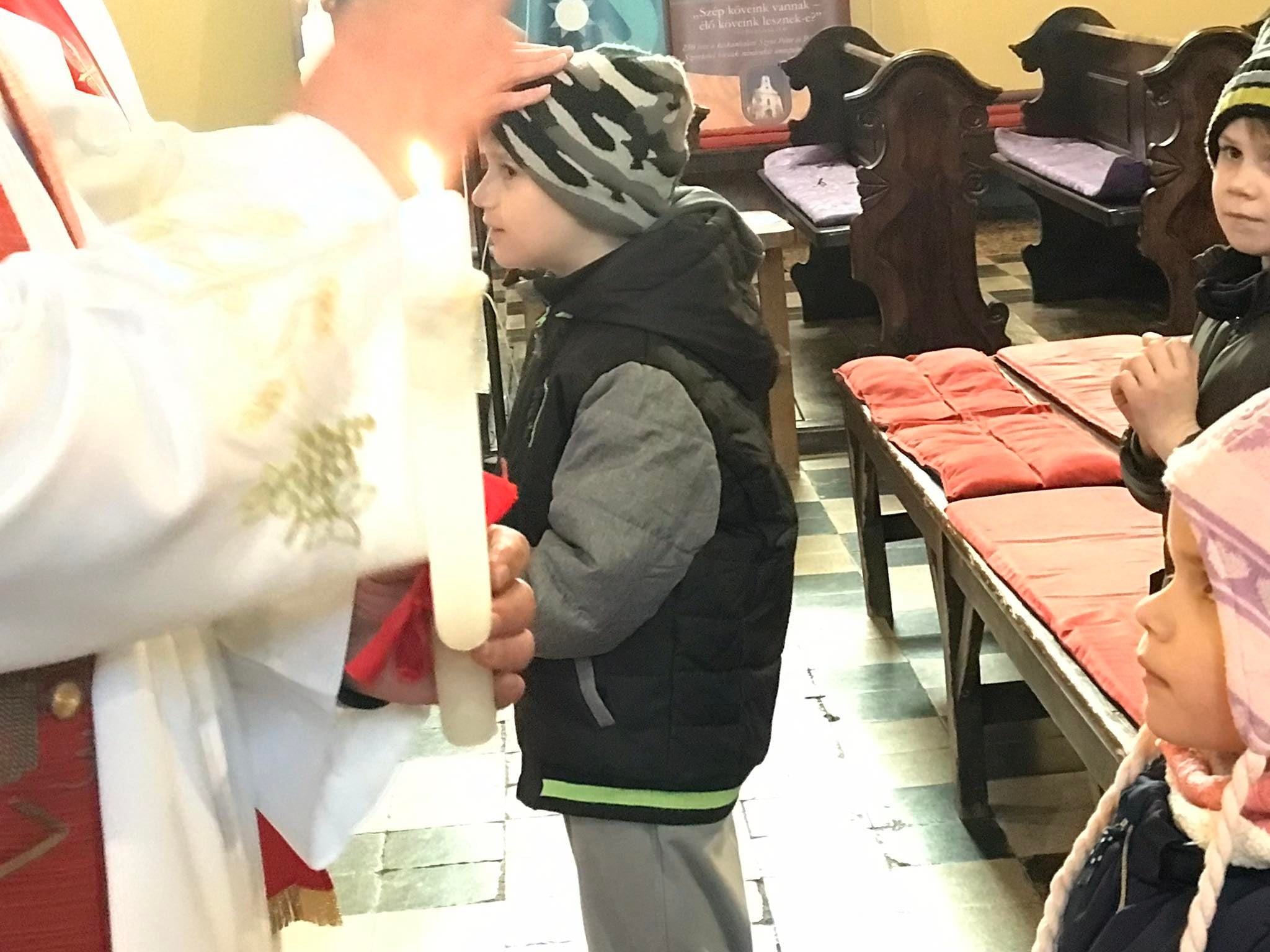 Elsétáltunk a templomba, ahol Zsolt atya és Feri atya megszentelte a csoportok gyertyáit, és mindenki Balázs áldást kapott.