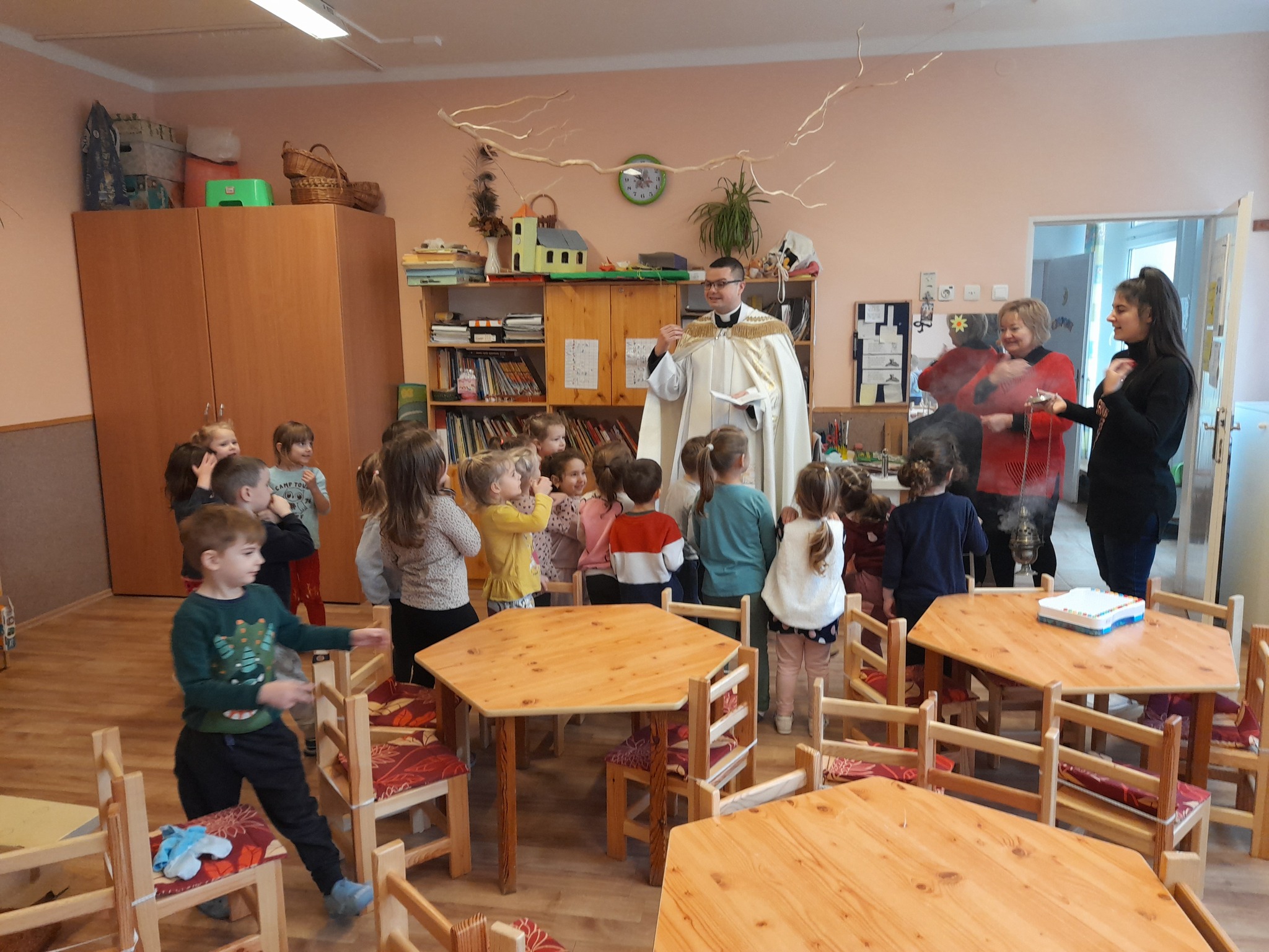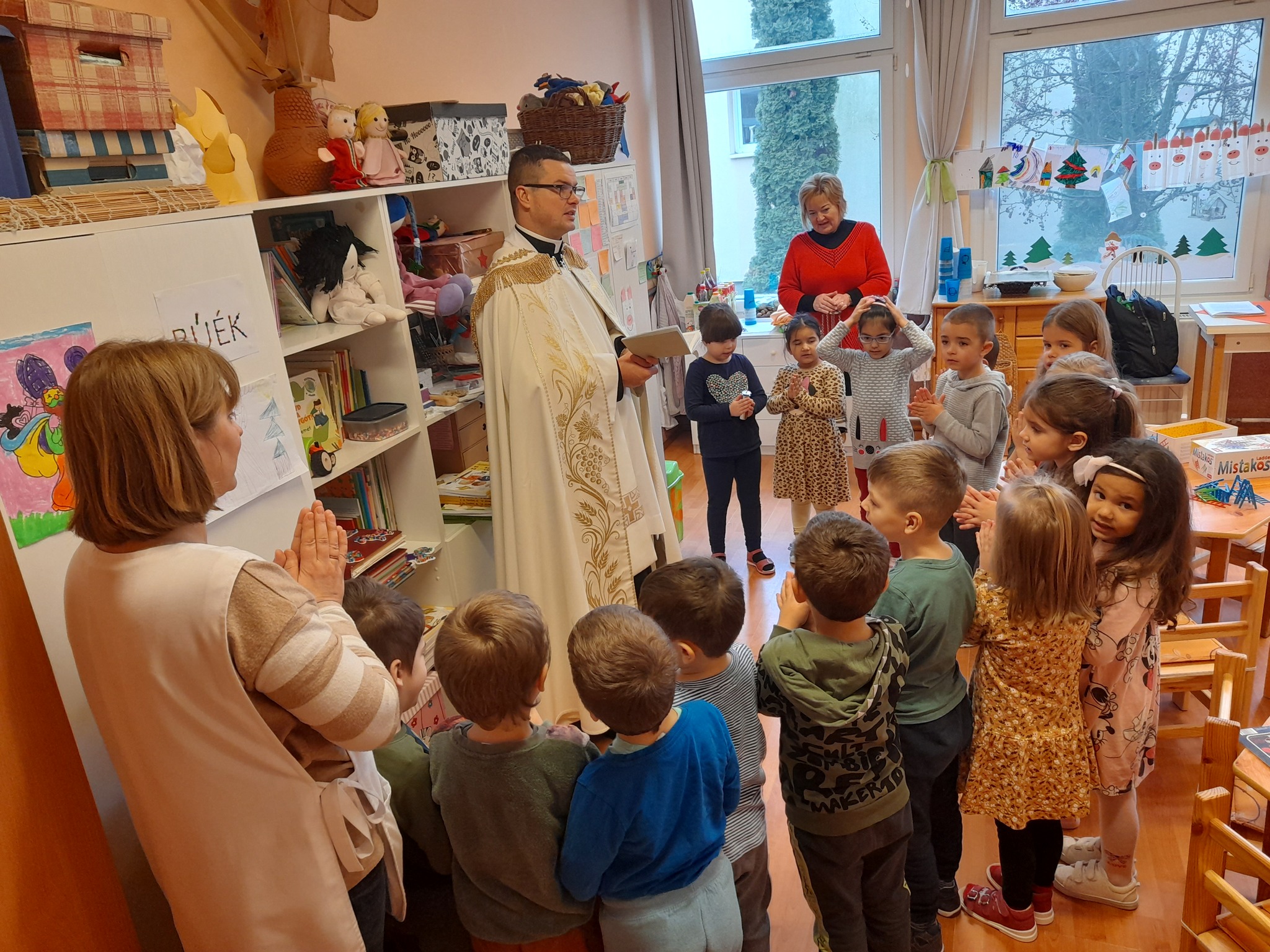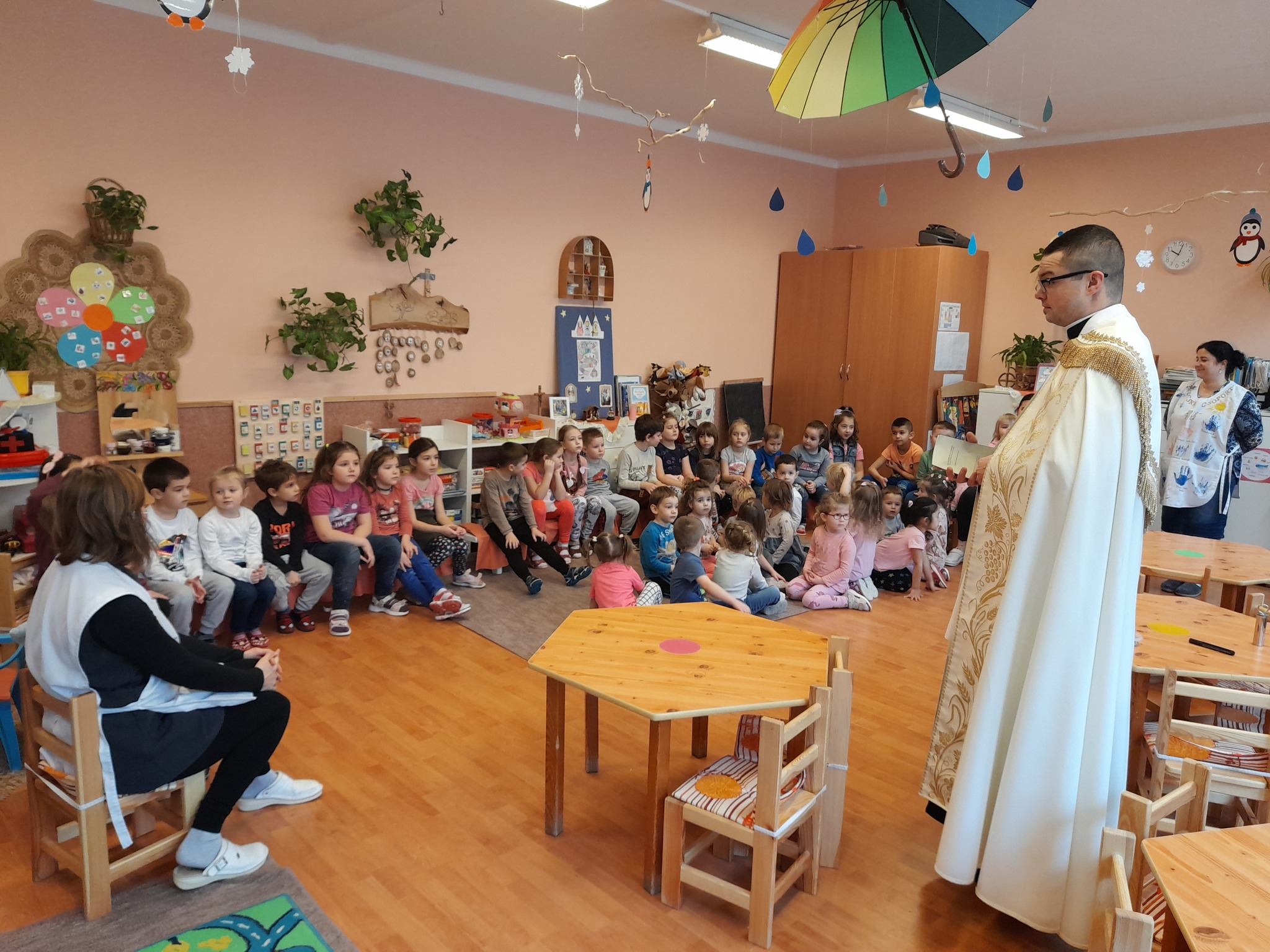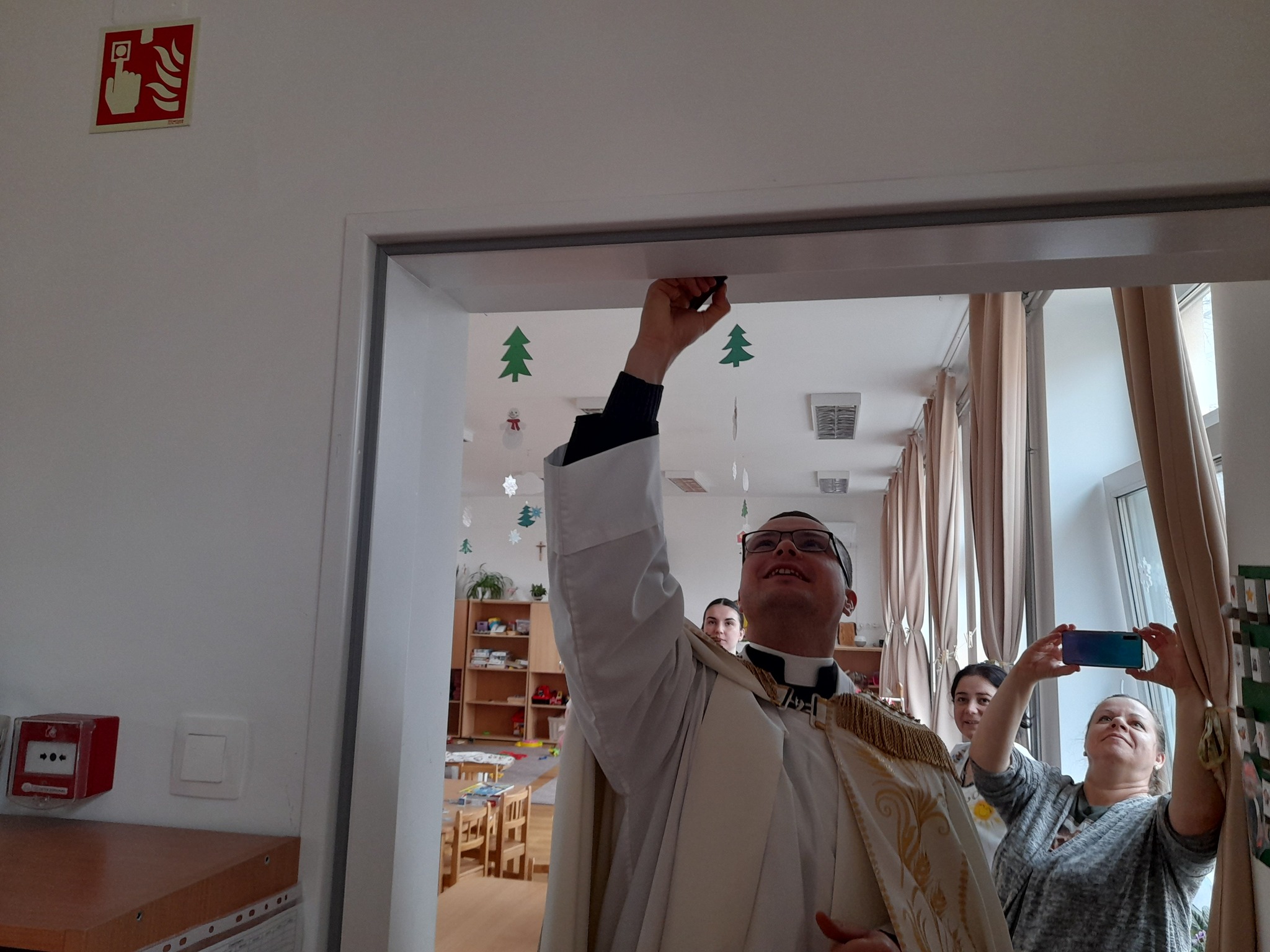 Január 13-án reggel a Halas TV forgatott óvodánkban. Délelőtt Gyirán Péter atya, óvodánk lelki vezetője a házszentelés szertartását végezte intézményünkben. Legyen áldás, békesség, szeretet gyönyörű katolikus óvodánkon! Áldás kísérje a kollégák munkáját, és minden család életét!