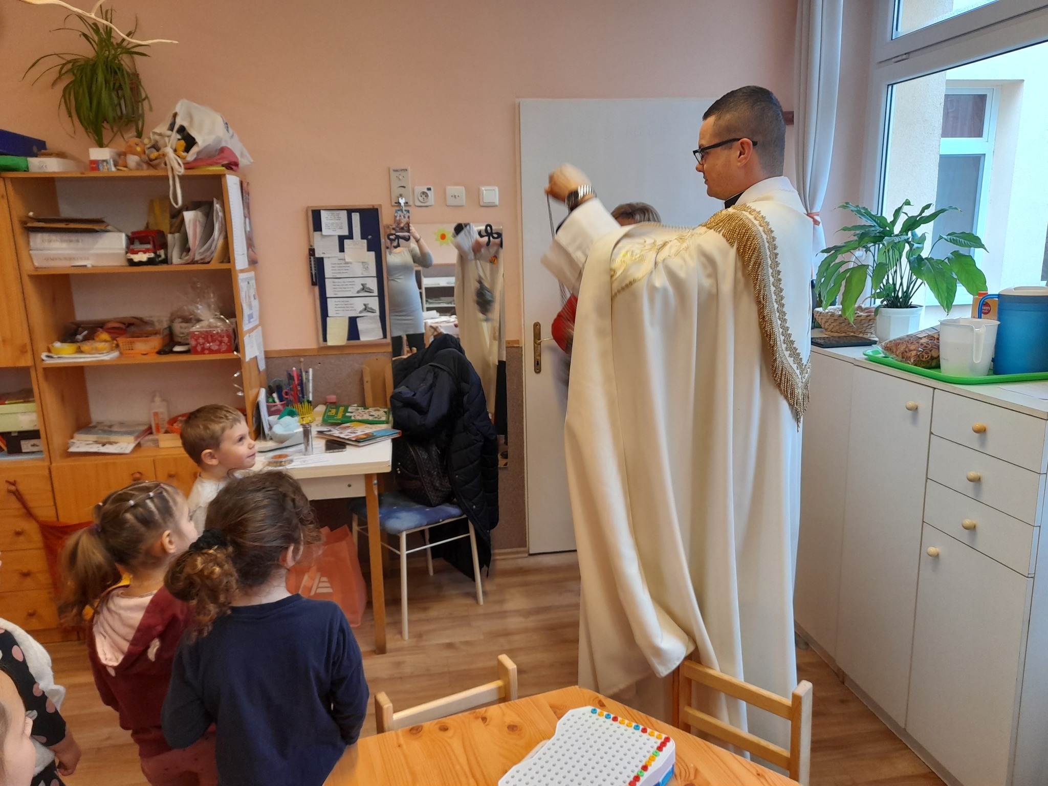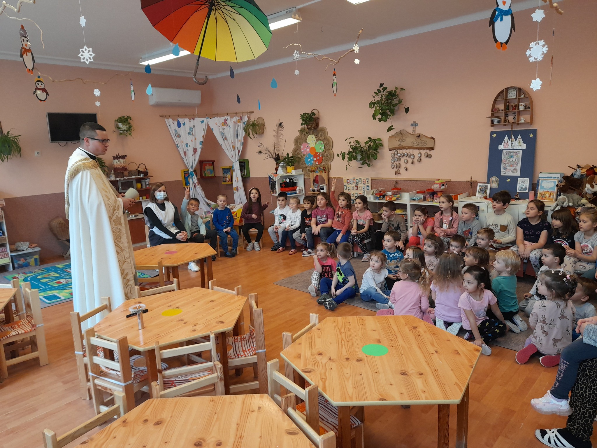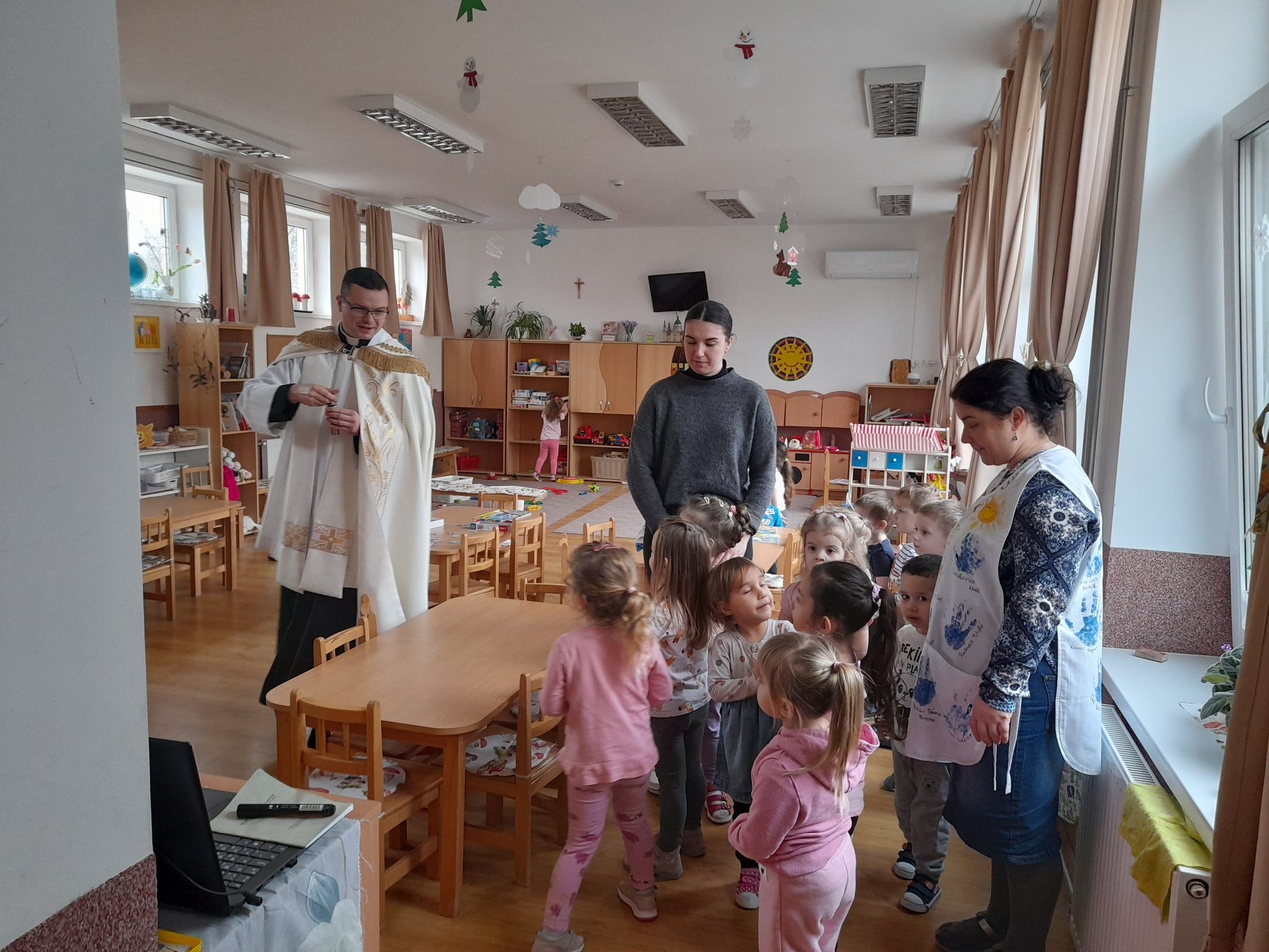 Január 13-án reggel a Halas TV forgatott óvodánkban. Délelőtt Gyirán Péter atya, óvodánk lelki vezetője a házszentelés szertartását végezte intézményünkben. Legyen áldás, békesség, szeretet gyönyörű katolikus óvodánkon! Áldás kísérje a kollégák munkáját, és minden család életét!