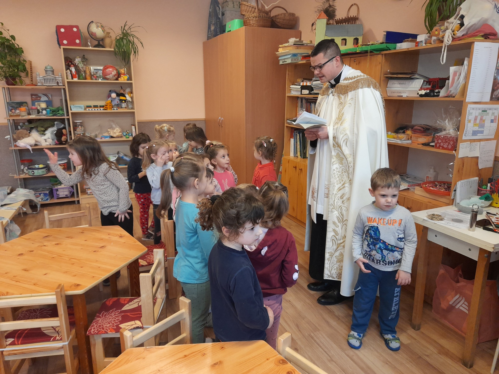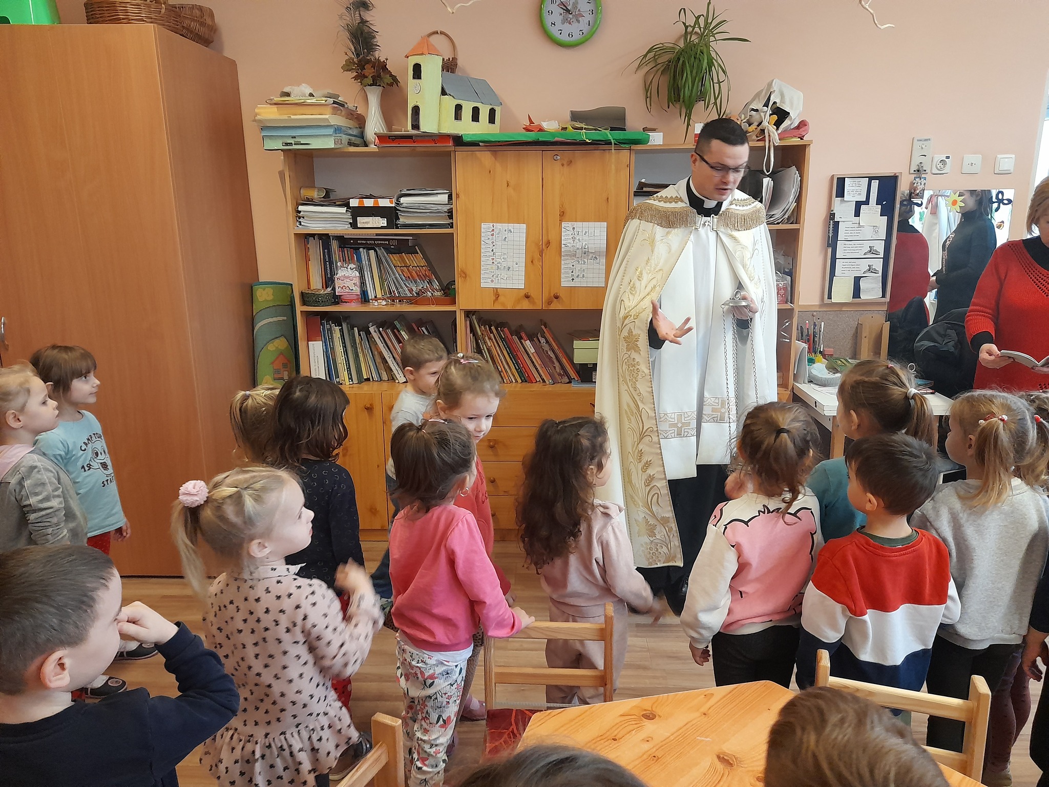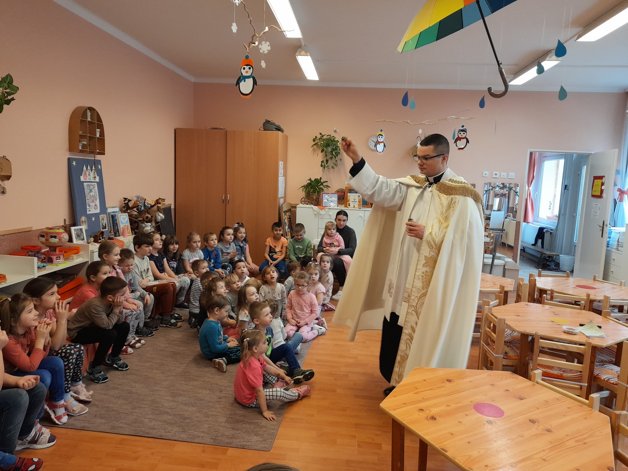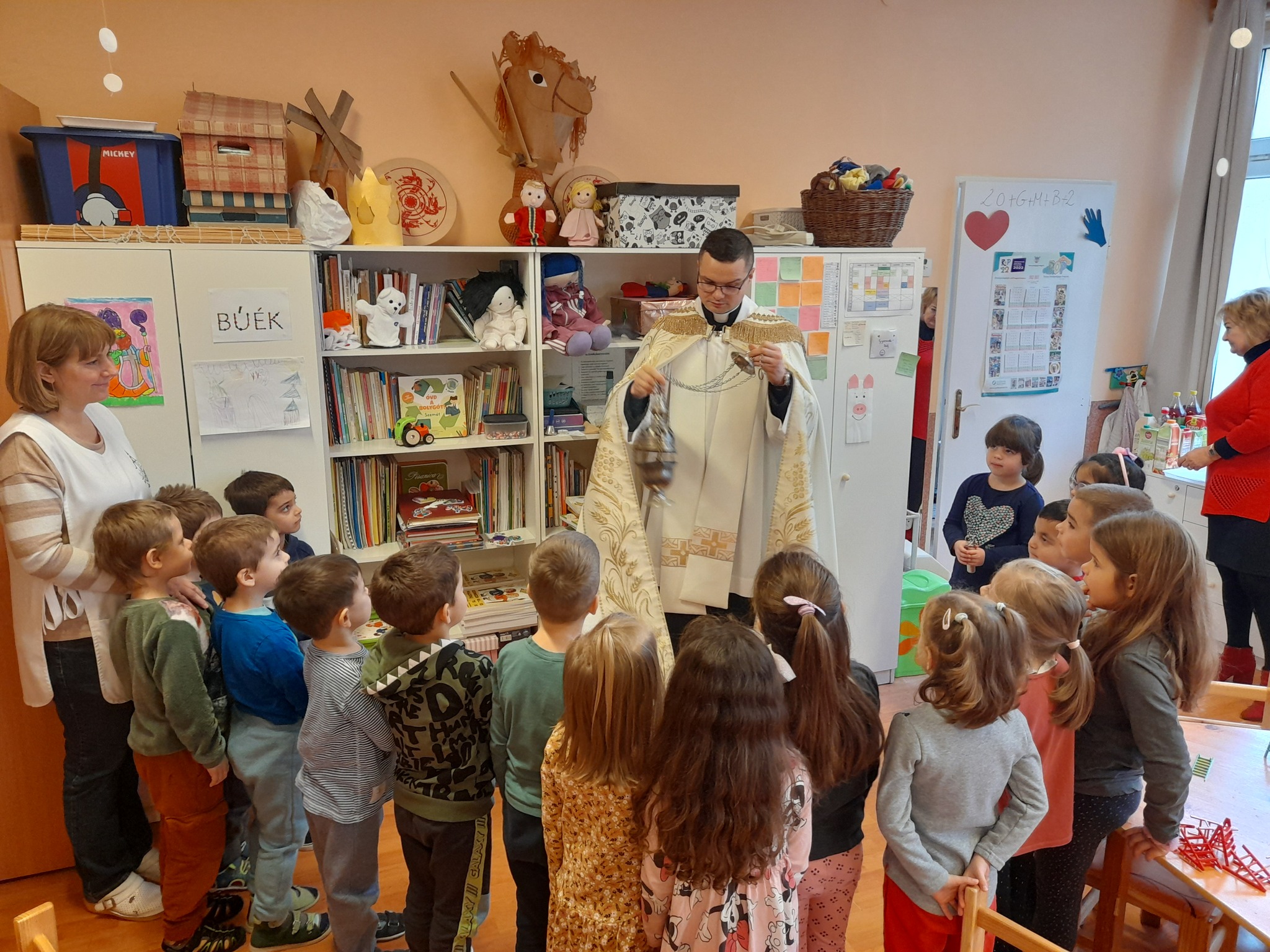Január 13-án reggel a Halas TV forgatott óvodánkban. Délelőtt Gyirán Péter atya, óvodánk lelki vezetője a házszentelés szertartását végezte intézményünkben. Legyen áldás, békesség, szeretet gyönyörű katolikus óvodánkon! Áldás kísérje a kollégák munkáját, és minden család életét!