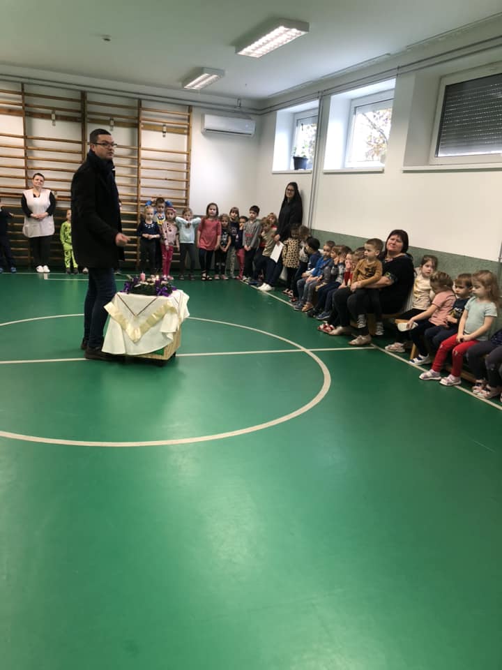 Pénteken meggyújtotta Péter atya az adventi koszorú első gyertyàját. Gyertyagyújtás előtt a Szent József Katolikus Àltalános Iskola 4.b osztályosai bábelőadással kedveskedtek az óvodásoknak. Köszönjük a kedves báb darabot, ès a felkészítést Gyepes Beáta tanítónőnek.