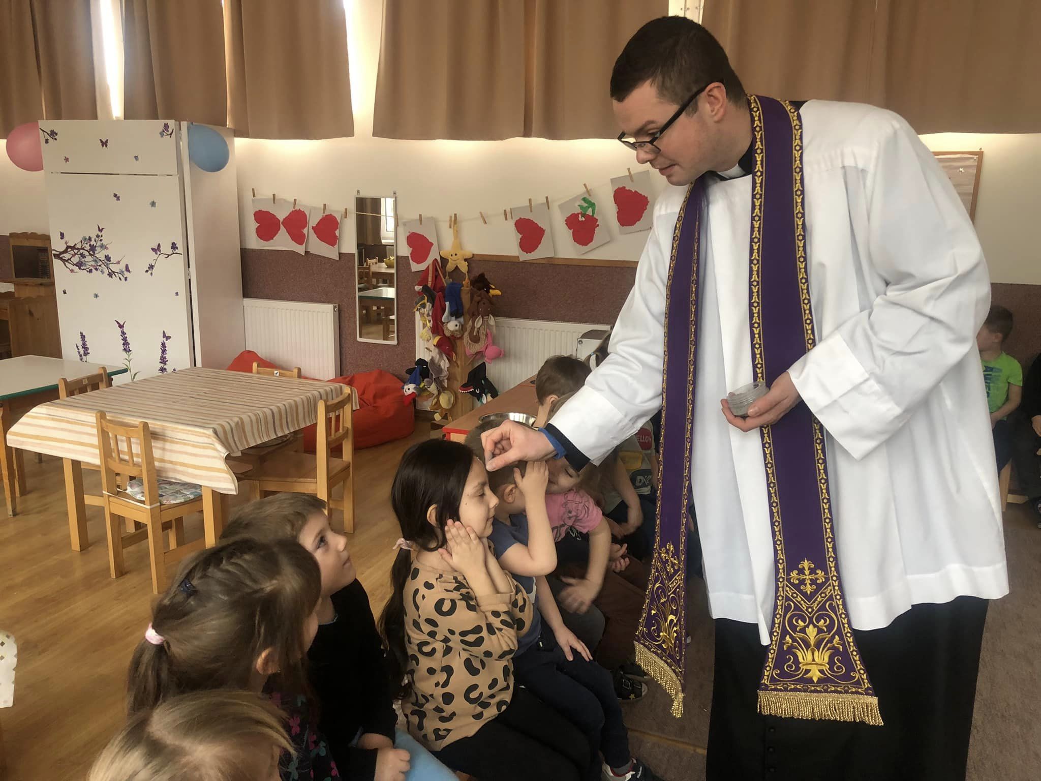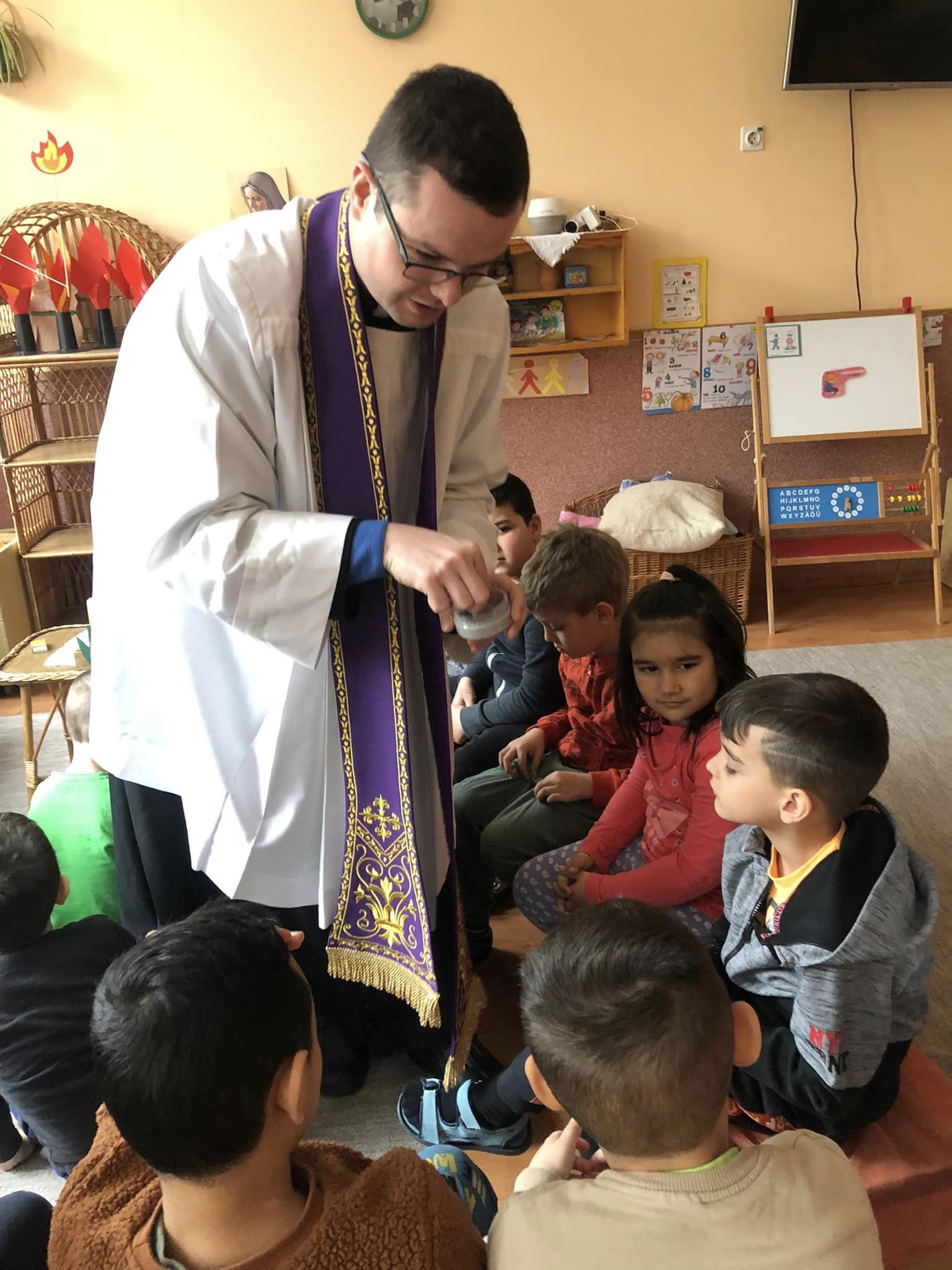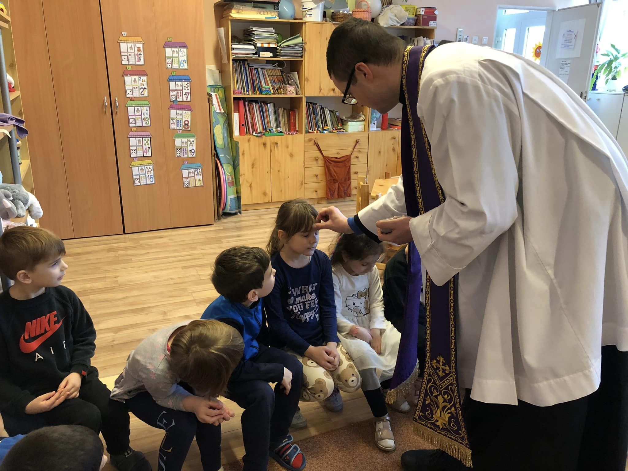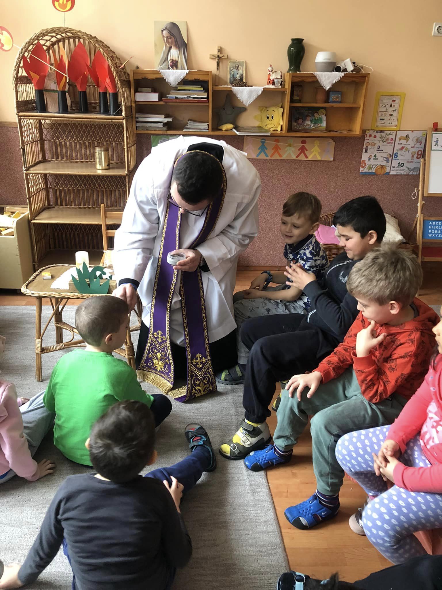 Tegnap volt hamvazószerda, a nagyböjt kezdete! Ma Péter atya a hamvazkodás szentelményébe részesítette a gyerekeket, kollégákat: “Emlékezz ember, hogy porból lettél és porrá leszel! “